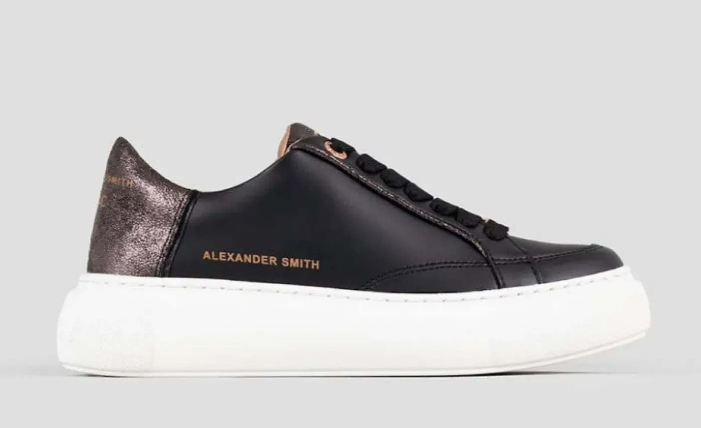 Sneakers in eco bio con dettagli rame. Dettagli posteriori eco bio lucido. Chiusura con lacci. Placchetta sui lacci logata removibile. Fondo gomma 4,5cm