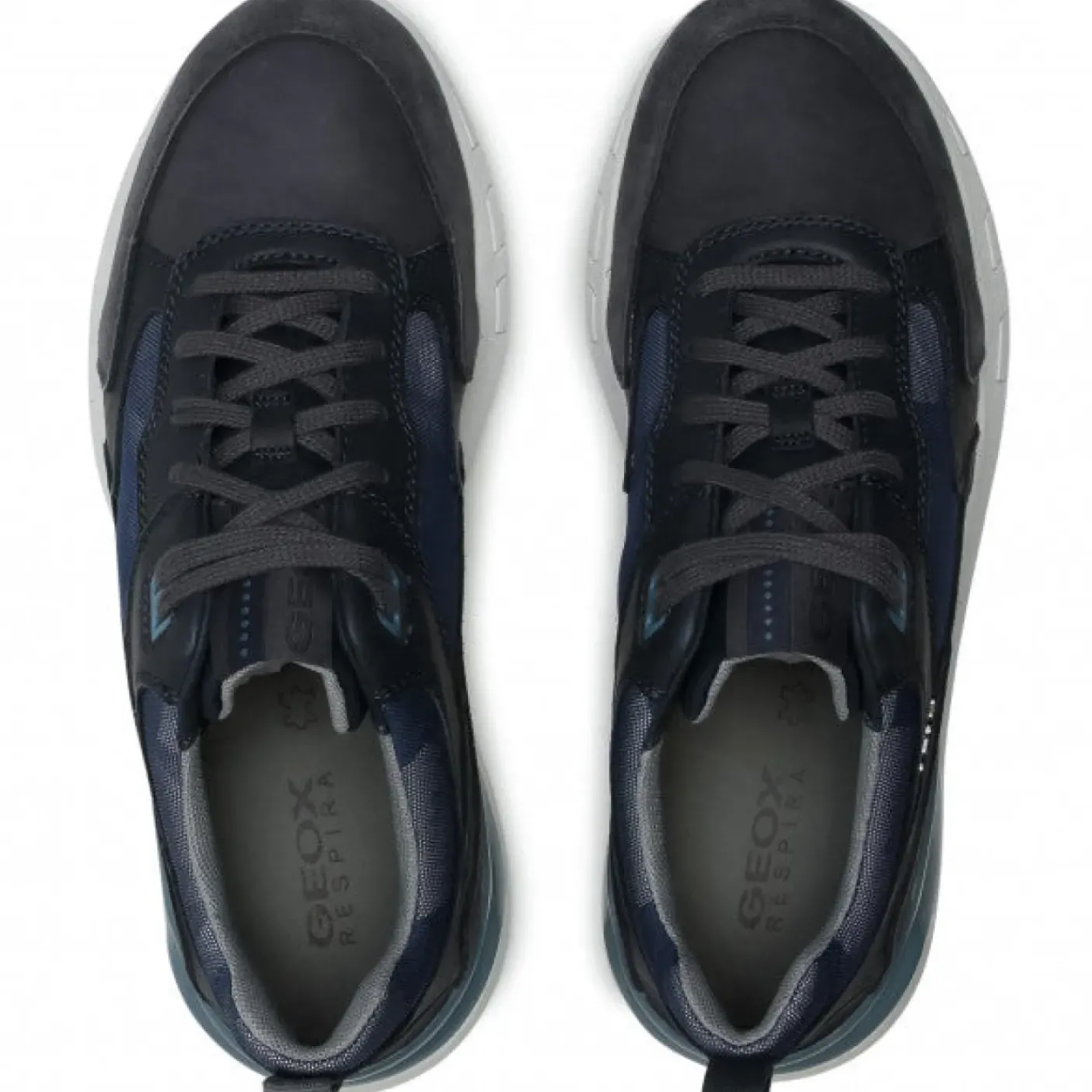 Sneakers in pelle, camoscio e tessuto, rivestita internamente in tessuto. Soletta in pelle rimovibile, Fondo in gomma con brevetto Geox che garantisce traspirabilità.
