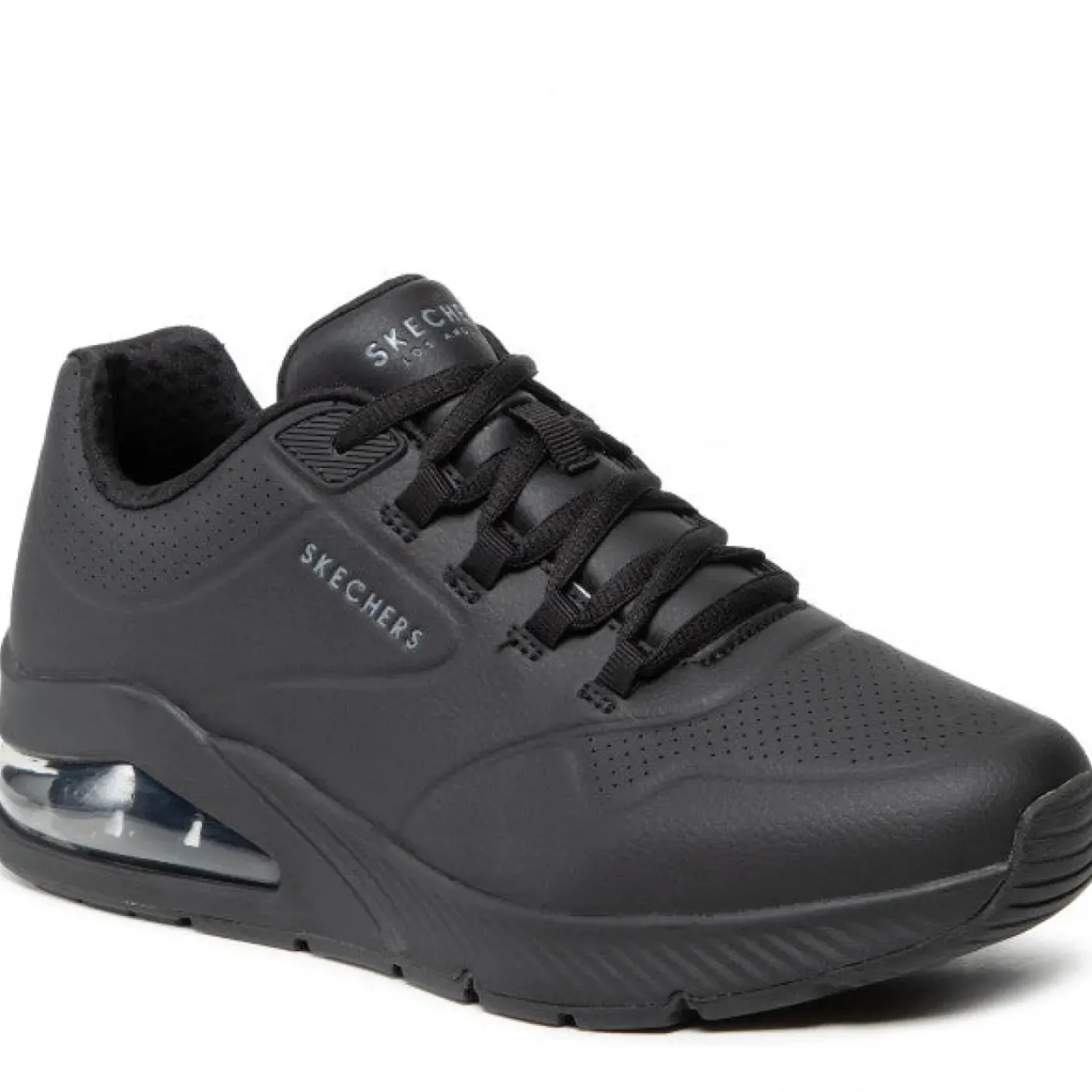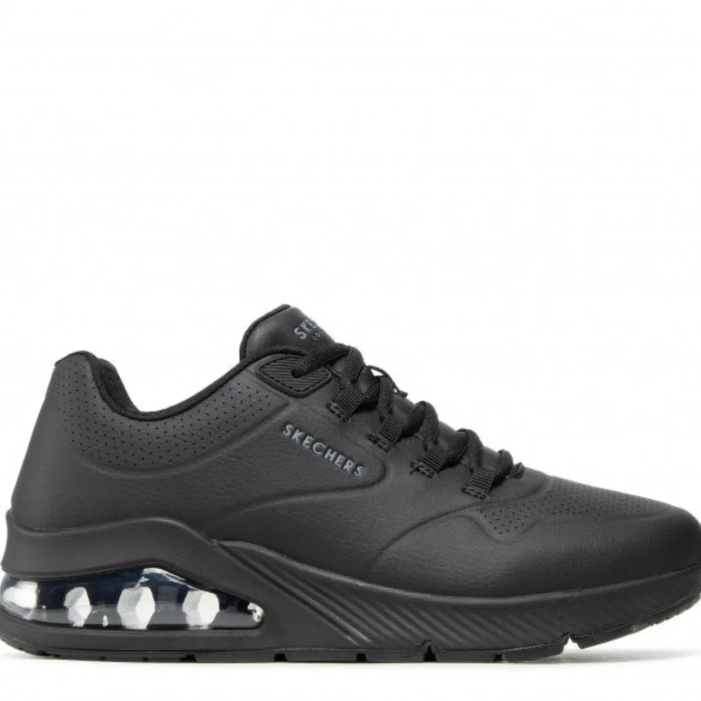 Sneakers in duraleather traforata, con soletta Skechers Air Cooled Memory Foam® e intersuola ammortizzata ad aria con tecnologia visibile Skech-Air®. Chiusura con lacci.