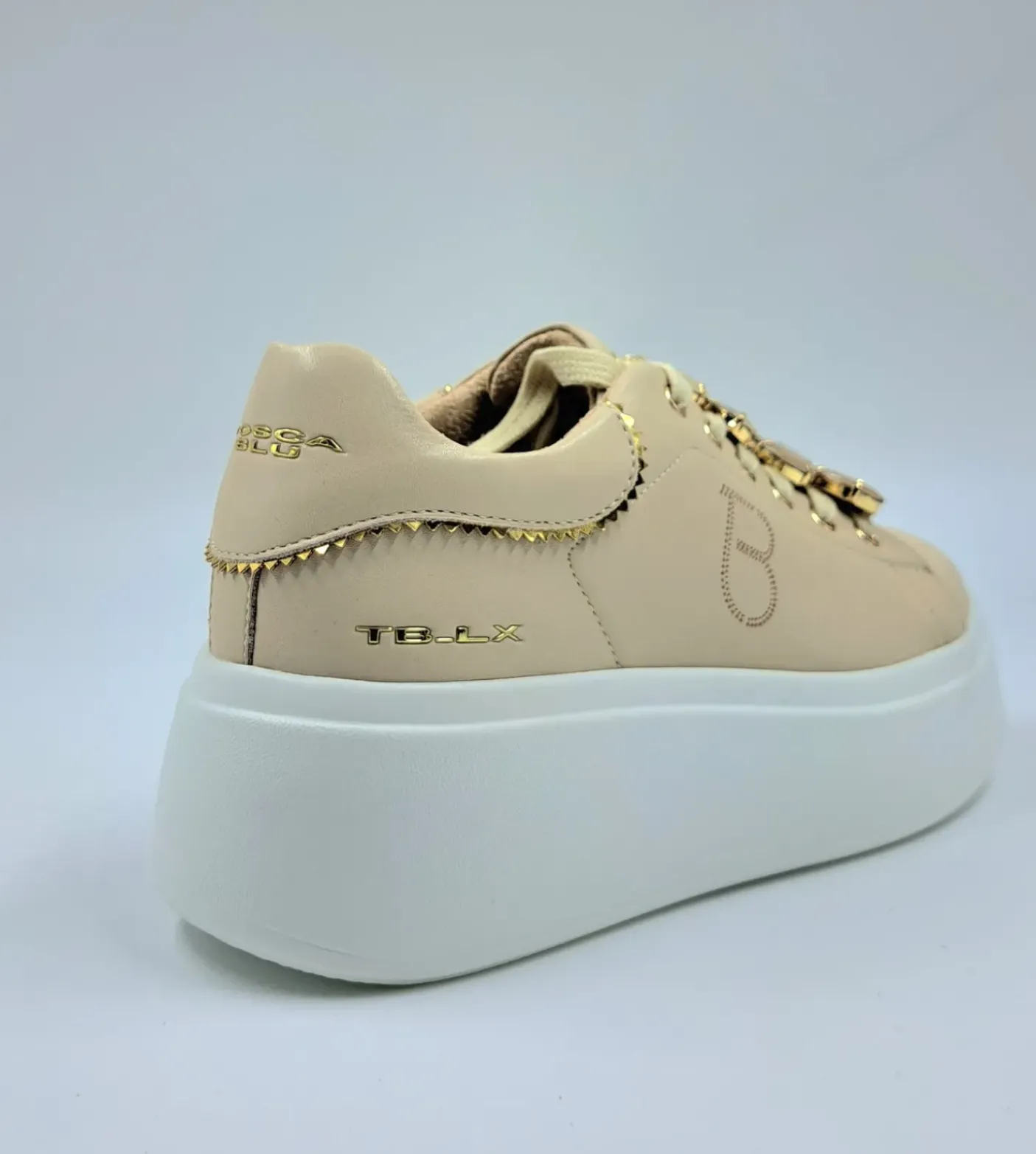SNEAKERS PELLE BEIGE ELETTRA TOSCA BLU CHARMS FIORI