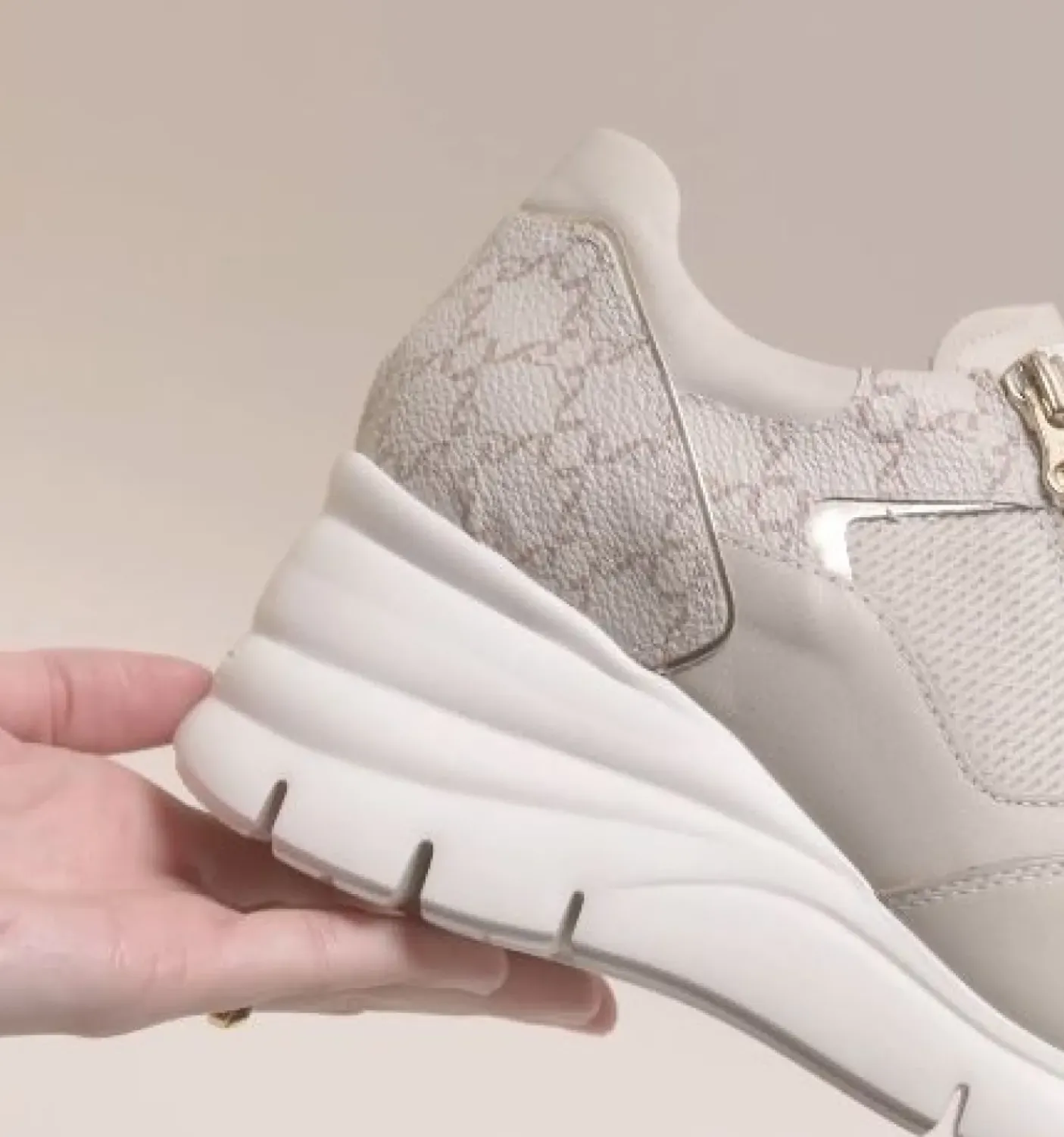 Sneakers in pelle all logo stampa sul tallone. Dettagli gold.. Chiusura con lacci e zip gold. Rivestita internamente in pelle. Soletta in pelle estraibile. Tecnologia DryGo! Fondo gomma tacco 6cm.