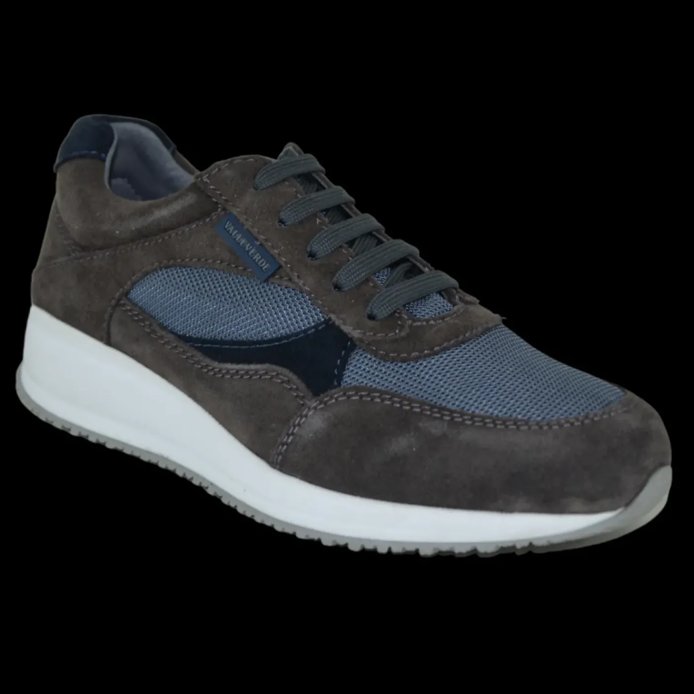 Sneakers in camoscio, pelle e tessuto tecnico. Soletta in pelle. Chiusura con lacci e fondo gomma.