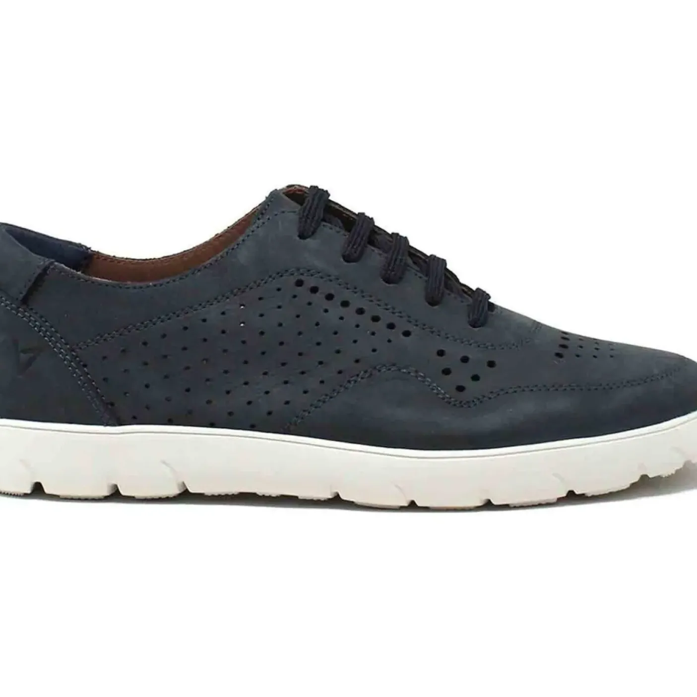 Sneakers in pelle traforata, rivestita internamente. Plantare in pelle. Chiusura con lacci. Fondo gomma 2,5cm