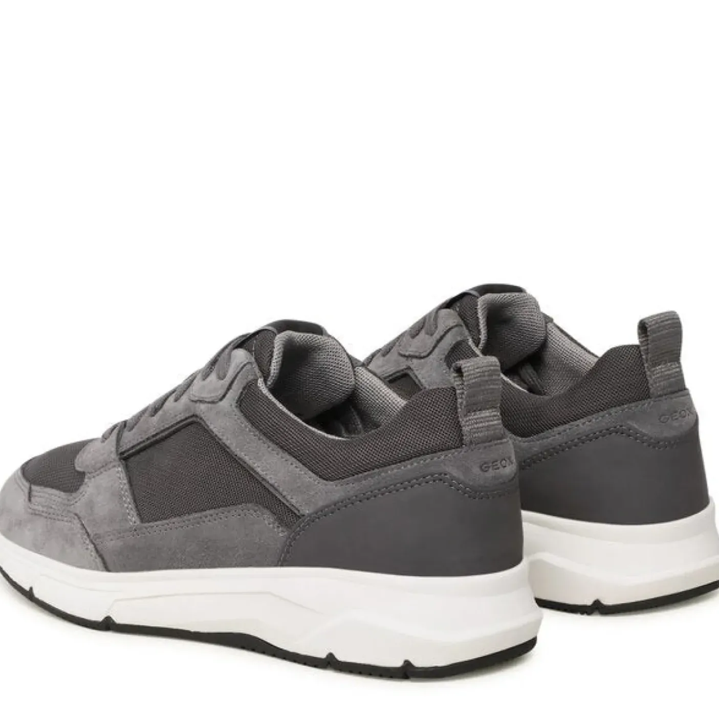Sneakers in scamosciato e mesh grigio e tessuto. Traspirabilità della suola e benessere del piede sono assicurati dai sistemi brevettati Geox. Chiusura con lacci. Soletta estraibile in pelle. Fondo gomma.
