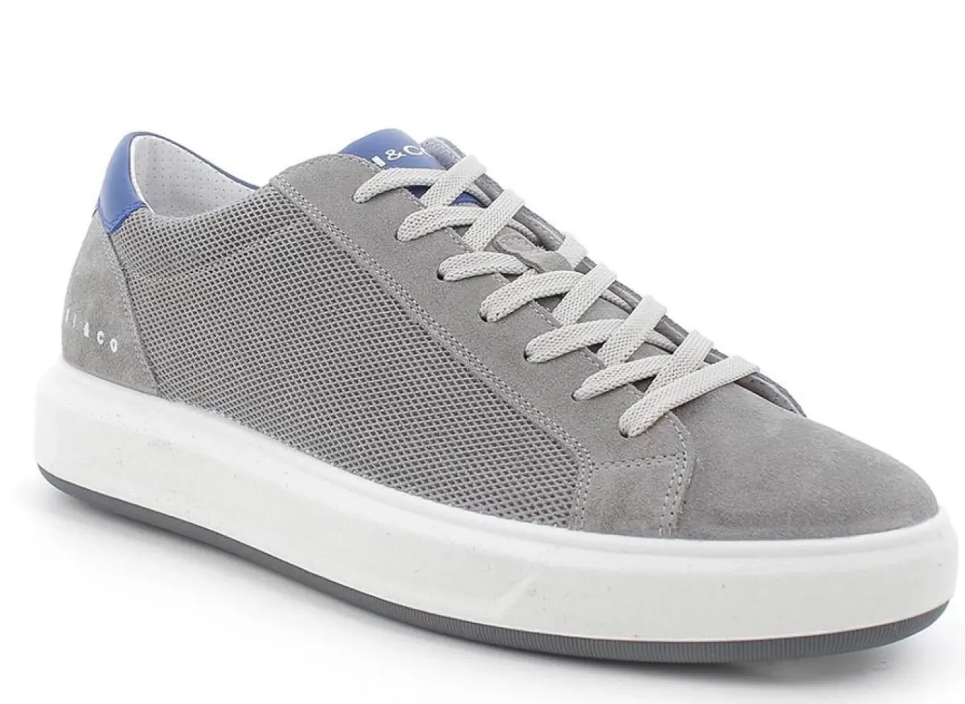 Sneakers scamosciata rivestita internamente in pelle. Fondo in gomma e chiusura con lacci.