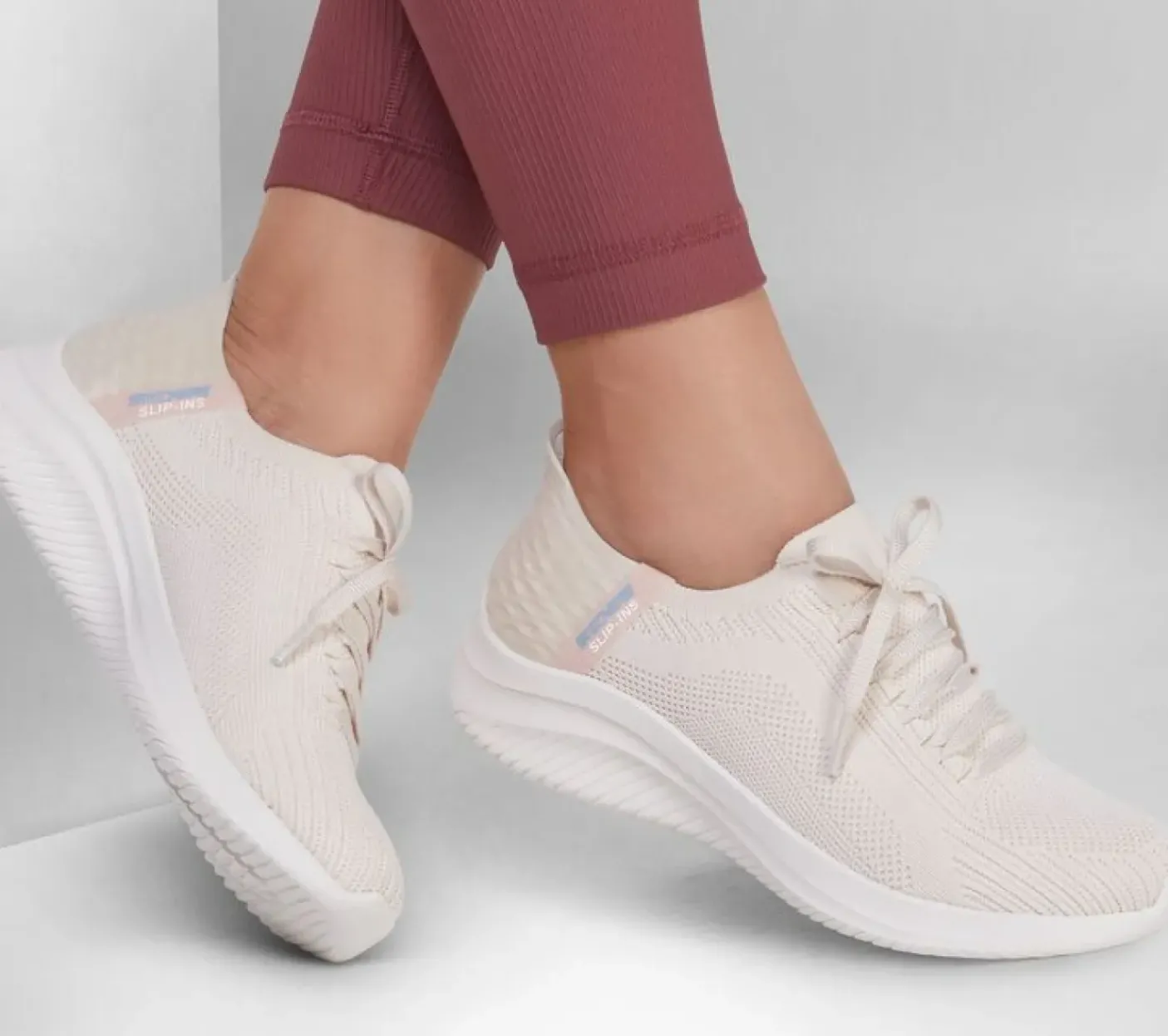 Sneakers con tomaia in maglia ingegnerizzata Stretch Fit®, lacci decorativi e una soletta ammortizzata Skechers Air Cooled Memory Foam®. Brevetto Hands Free Slip-ins™: Ultra Flex 3.0 – Brilliant Path. Progettato con un cuscino Comfort Pillow™ unico nel suo genere sul tallone.