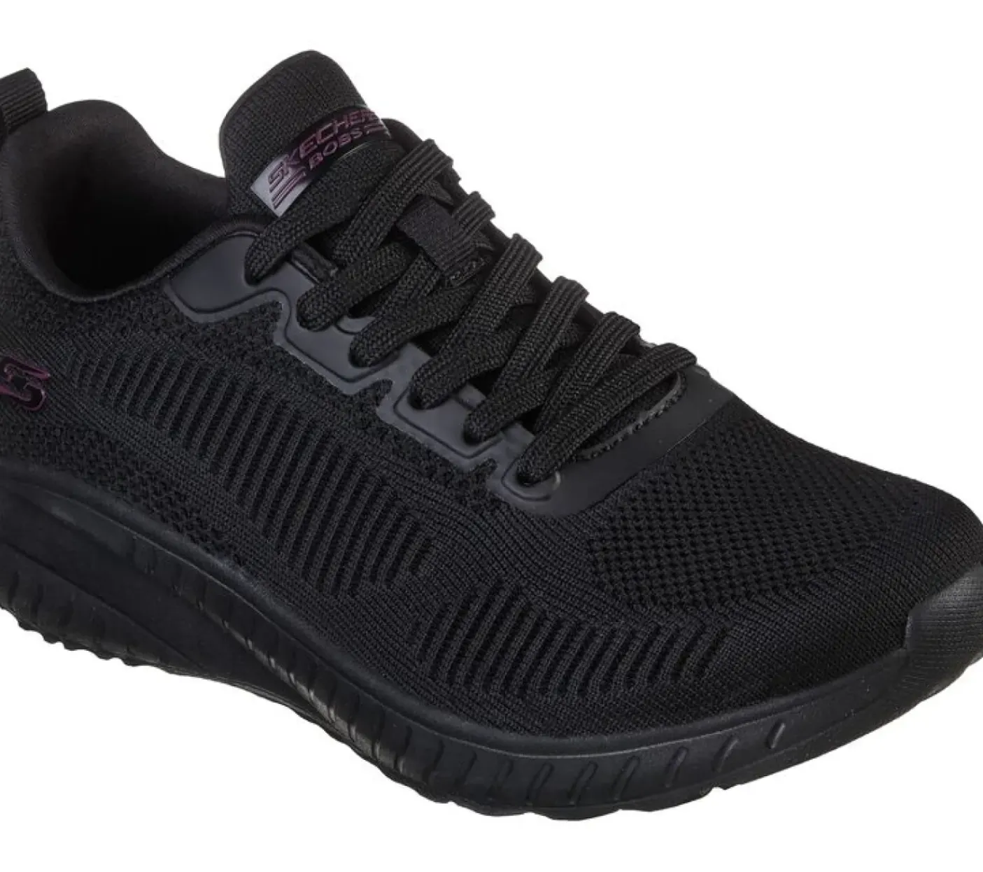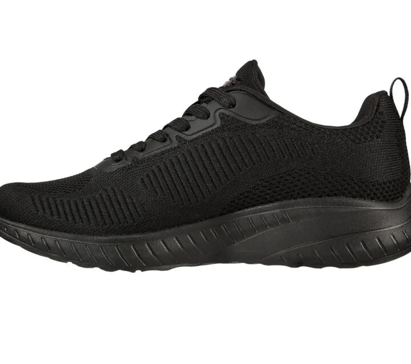 Sneakers con tomaia in maglia mesh tecnica con una soletta ammortizzata Memory Foam. Total black. Fondo in gomma e chiusura con lacci.