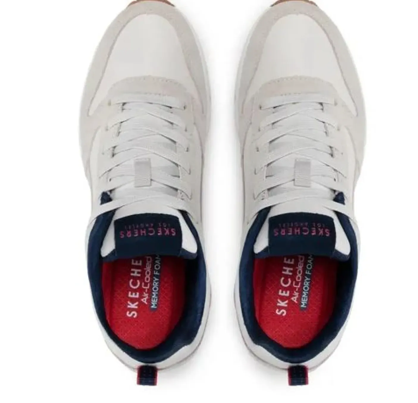 Sneakers in pelle scamosciata ed ecopelle. Rivestita in tessuto traspirante. Soletta Air Cooled Memory Foam® e intersuola ammortizzata ad aria con tecnologia visibile Skech-Air®. Chiusura con lacci.