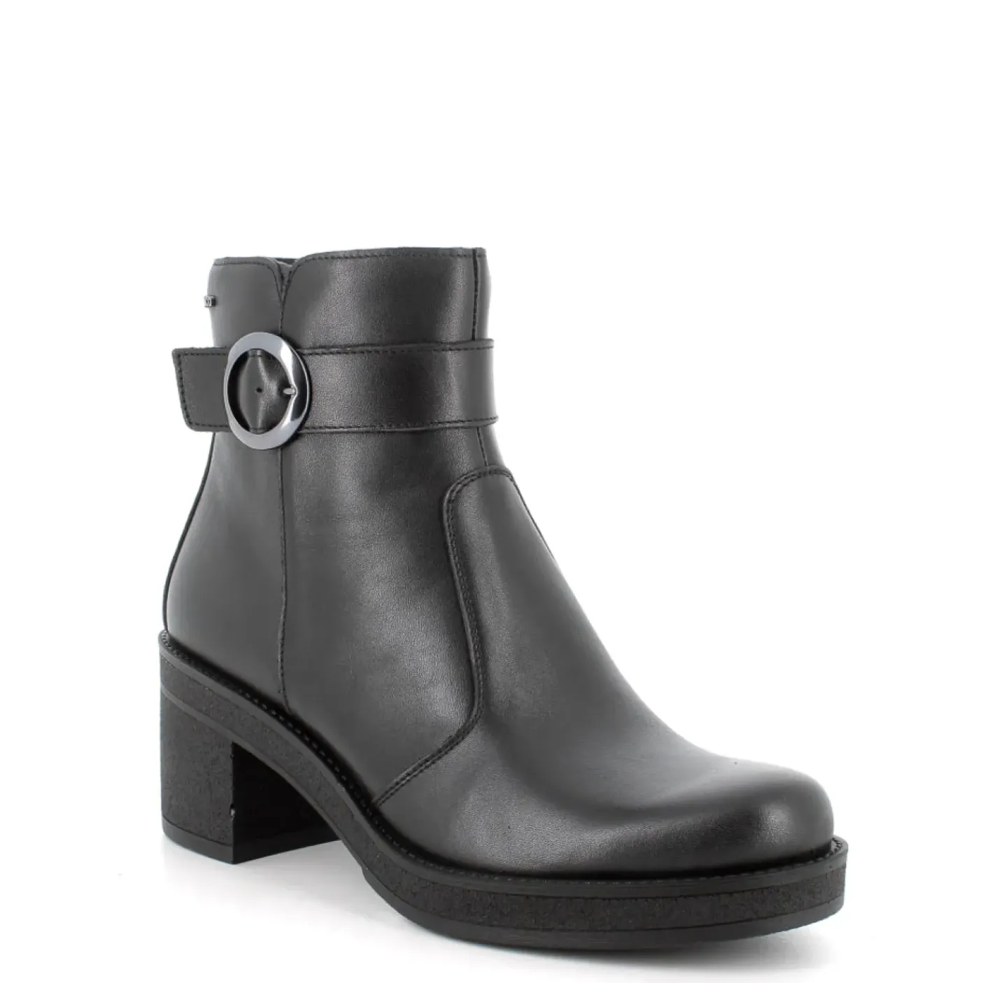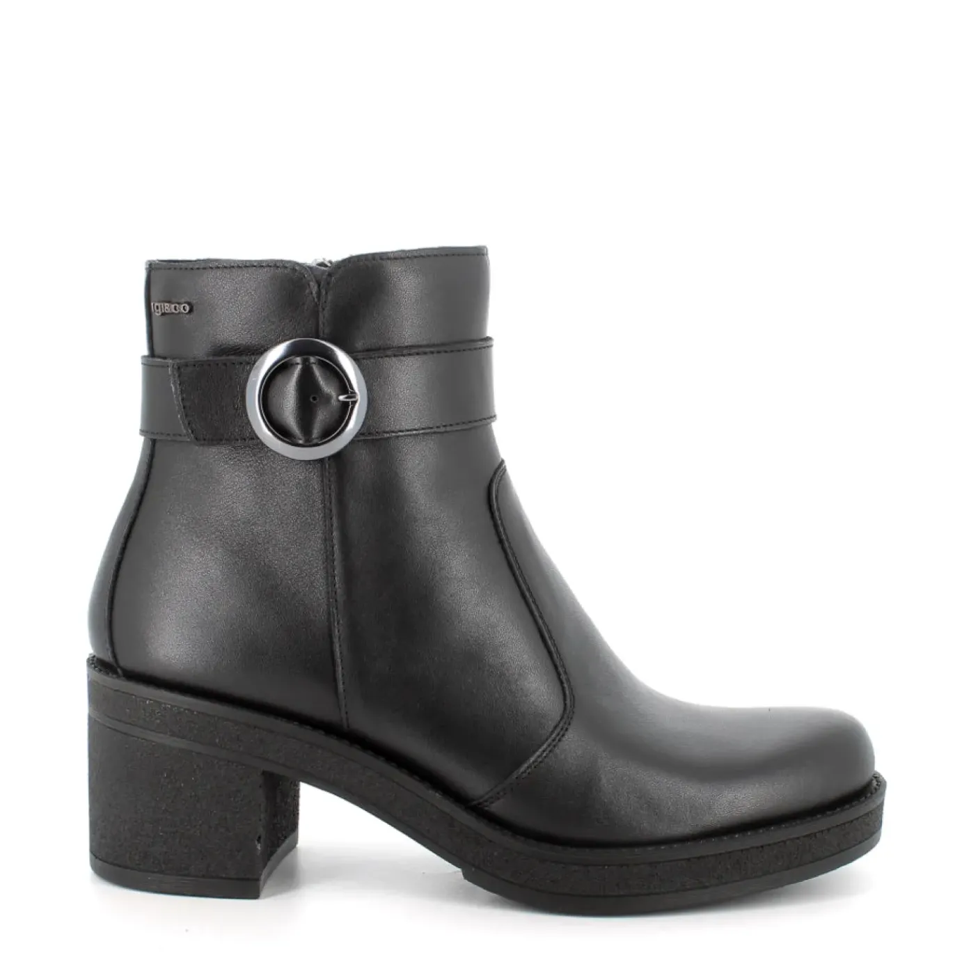 Stivaletti in vera pelle morbida. Rivestito internamente in caldo tessuto e pelle. Fibbia laterale decorativa. Chiusura con zip. Fondo gomma tacco7cm.