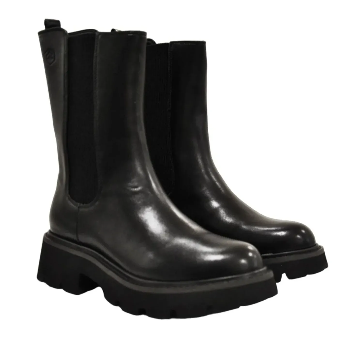 Stivali beatles in ecopelle elastici laterali. Rivestito internamente in tessuto ed ecopelle. Fondo gomma 5cm.
