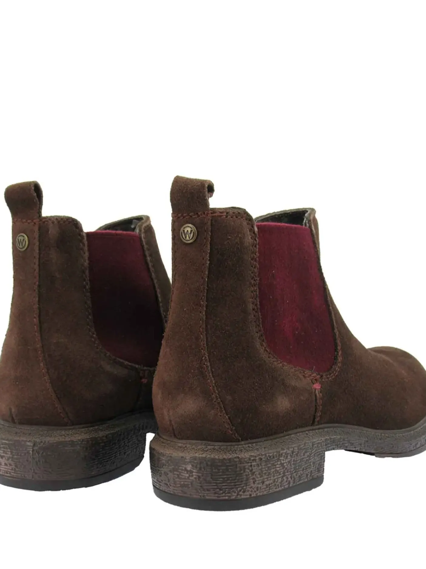 Stivaletti in pelle scamosciata effetto vintage. Elastici laterali a contrasto. Fondo in gomma.