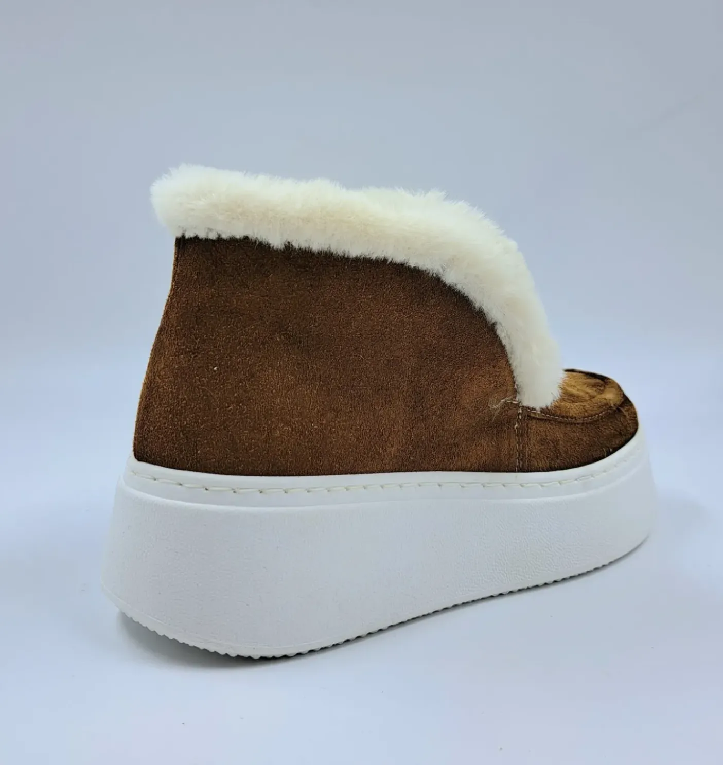 Stivaletti in vera pelle scamosciata. Rivestiti internamente in lana e pelliccia ecologica. Soletta in lana ecologica. Fondo gomma 5,5cm.