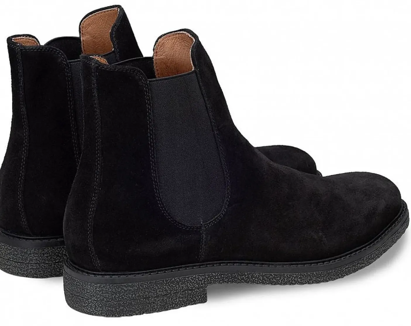 Stivaletti modello Beatles in camoscio con elastici laterali. Fondo in gomma.
