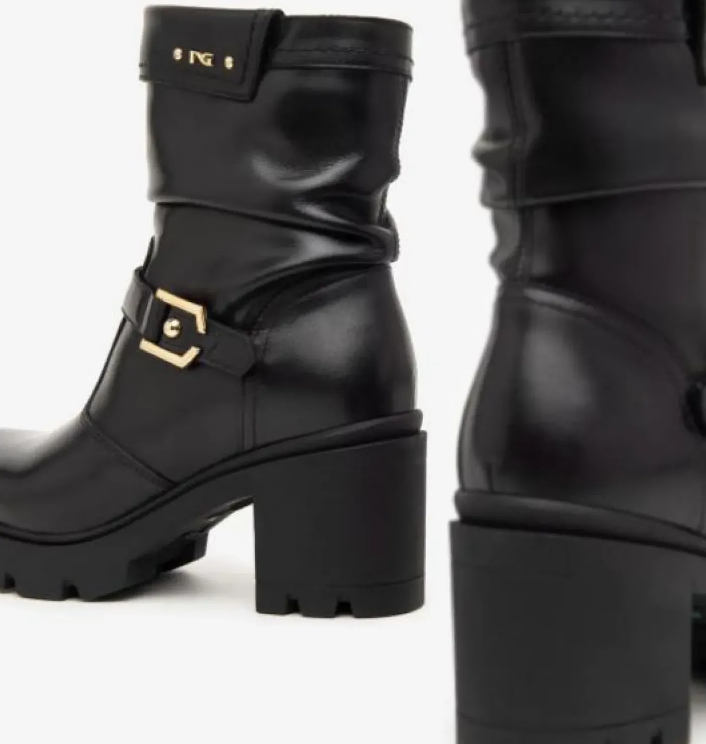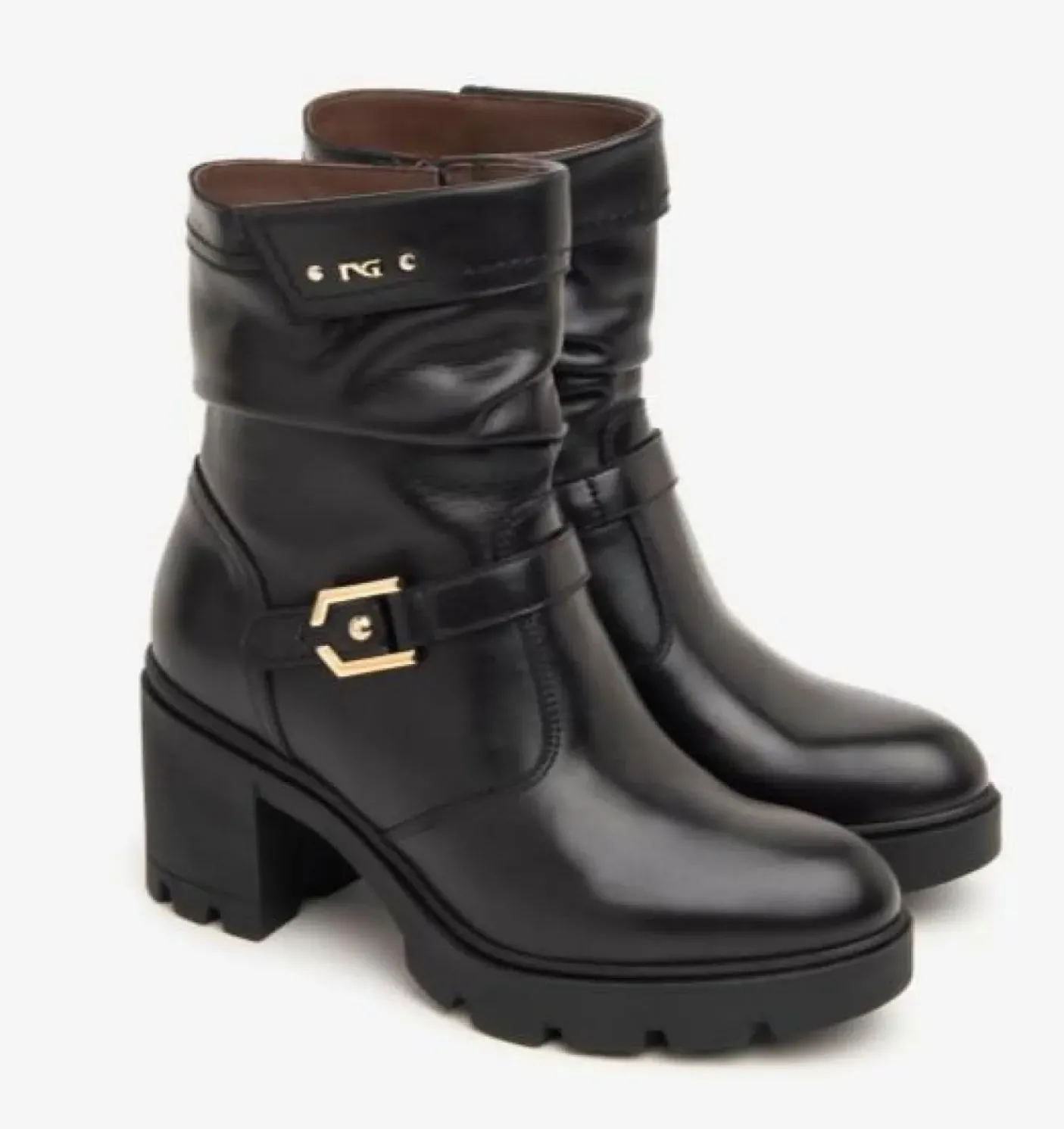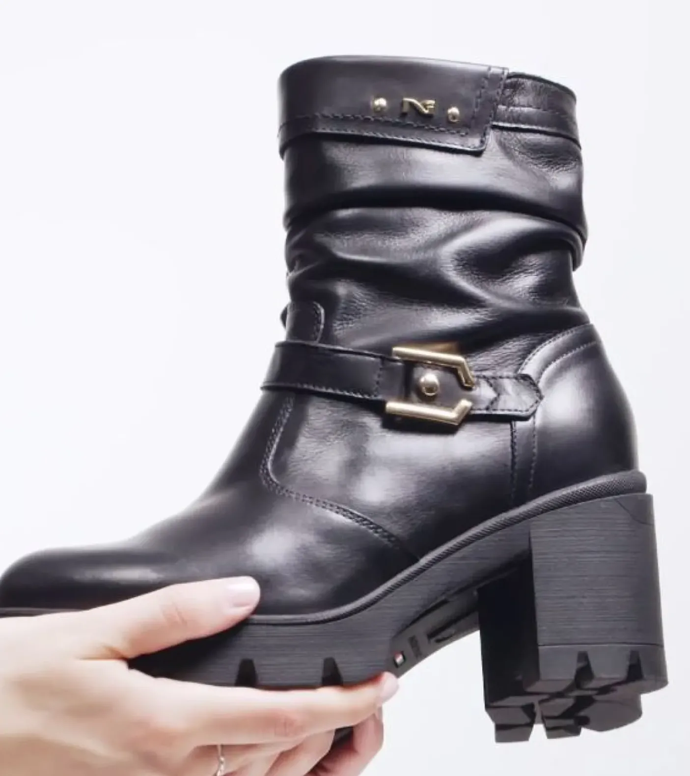 Stivaletti in pelle , rivestito internamente in pelle. Fibbia metalliche gold decorativa. Soletta in pelle. Fondo gomma tacco 7 cm