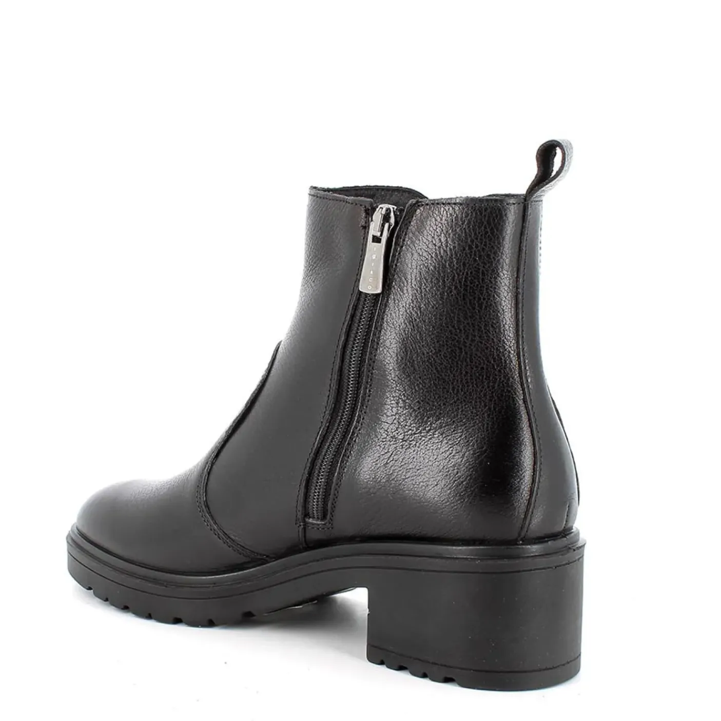 Stivaletto in morbida pelle nera, rivestito internamente in pelle. Soletta estraibile. Chiusura con zip. Fondo gomma 5cm