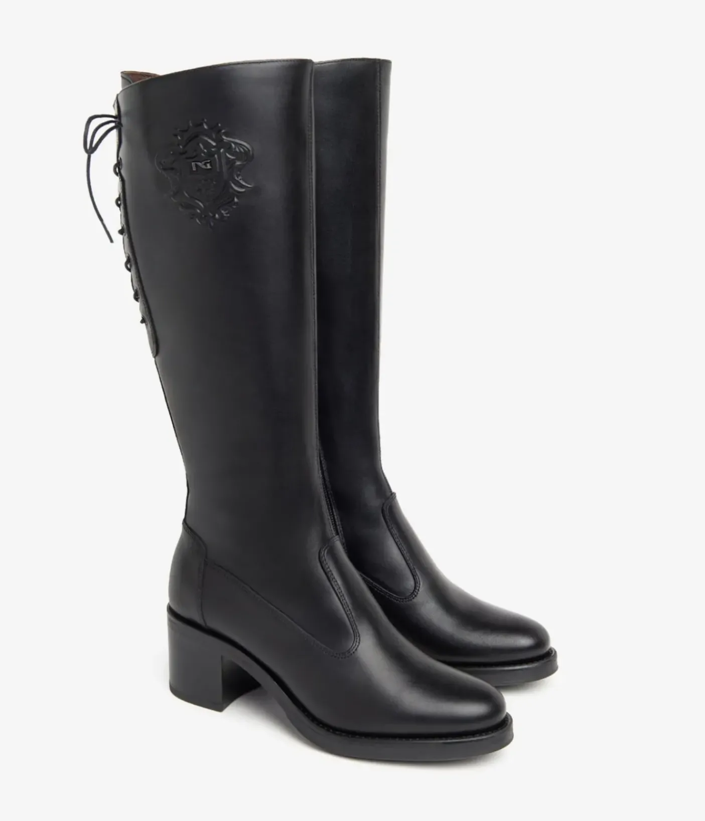 STIVALI PELLE CON LOGO STEMMA NERO