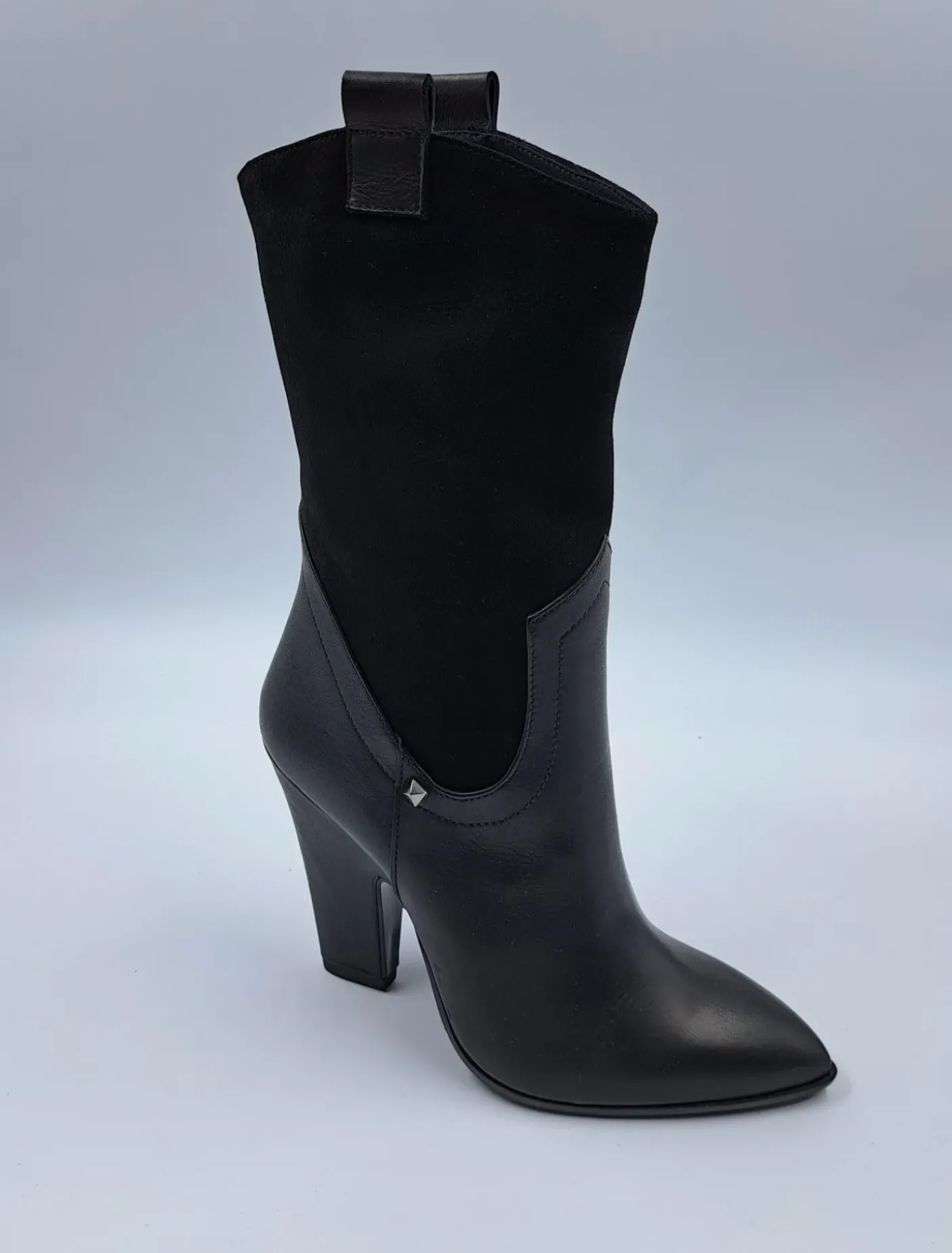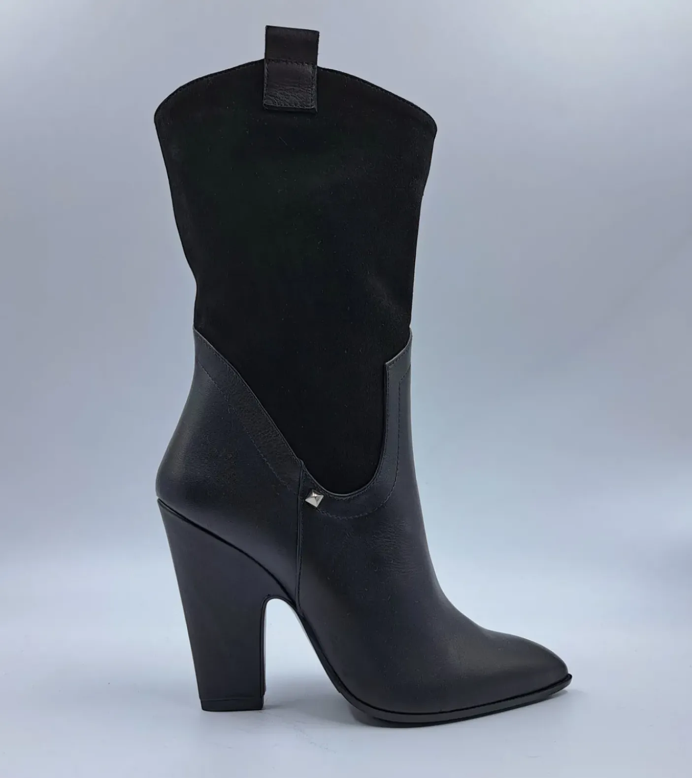 Stivali in vera pelle morbida e camoscio. Rivestito internamente in pelle. Soletta in pelle. Tacco rivestito 10,5cm. Altezza gambale 20cm