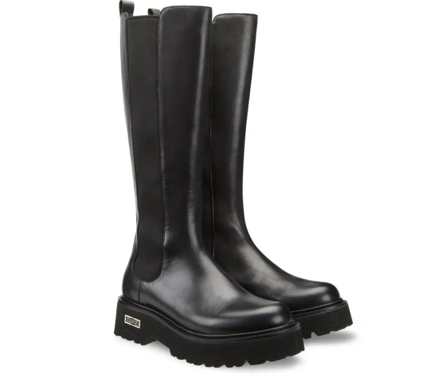 Stivali in pelle nera con elastico laterale e chiusura con zip. Fondo in gomma, suola a carrarmato.