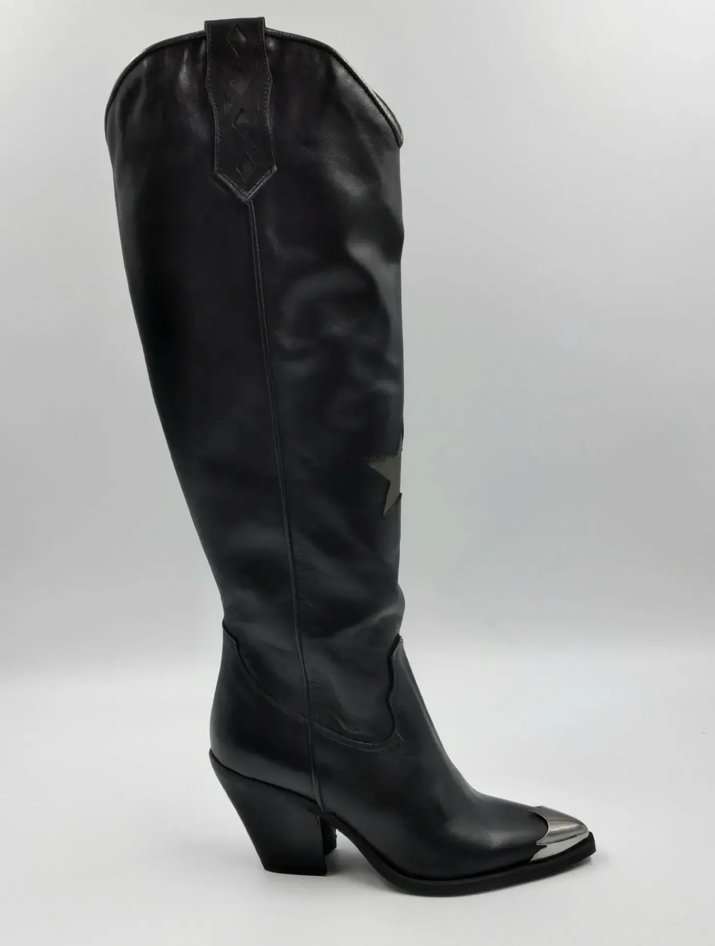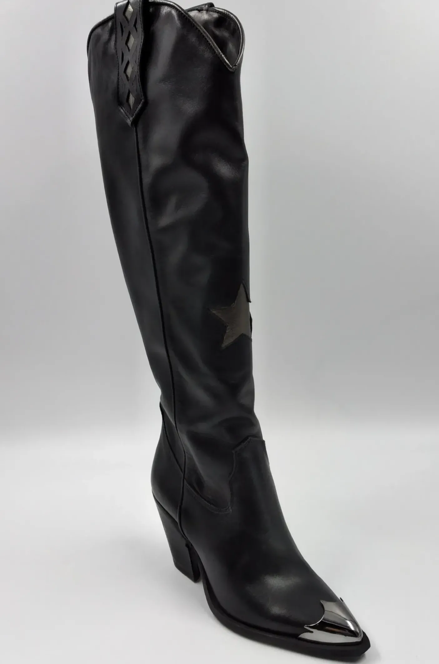 Stivali modello Texan in pelle. Rivestiti internamente. Tacco 8cm.