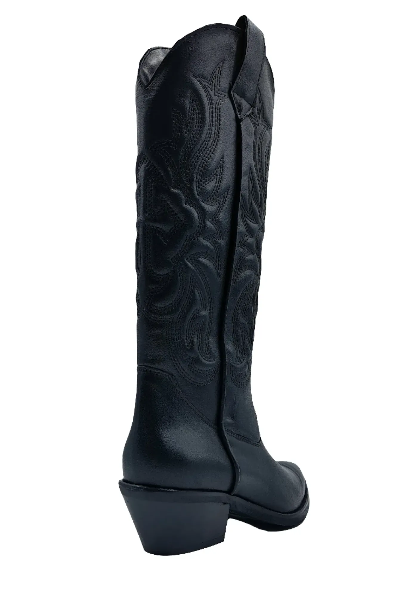 Stivale modello Texan in vera pelle, decorazioni ricamate. Rivestito internamente in pelle e tessuto Tacco 5cm, gambale 33/35cm.