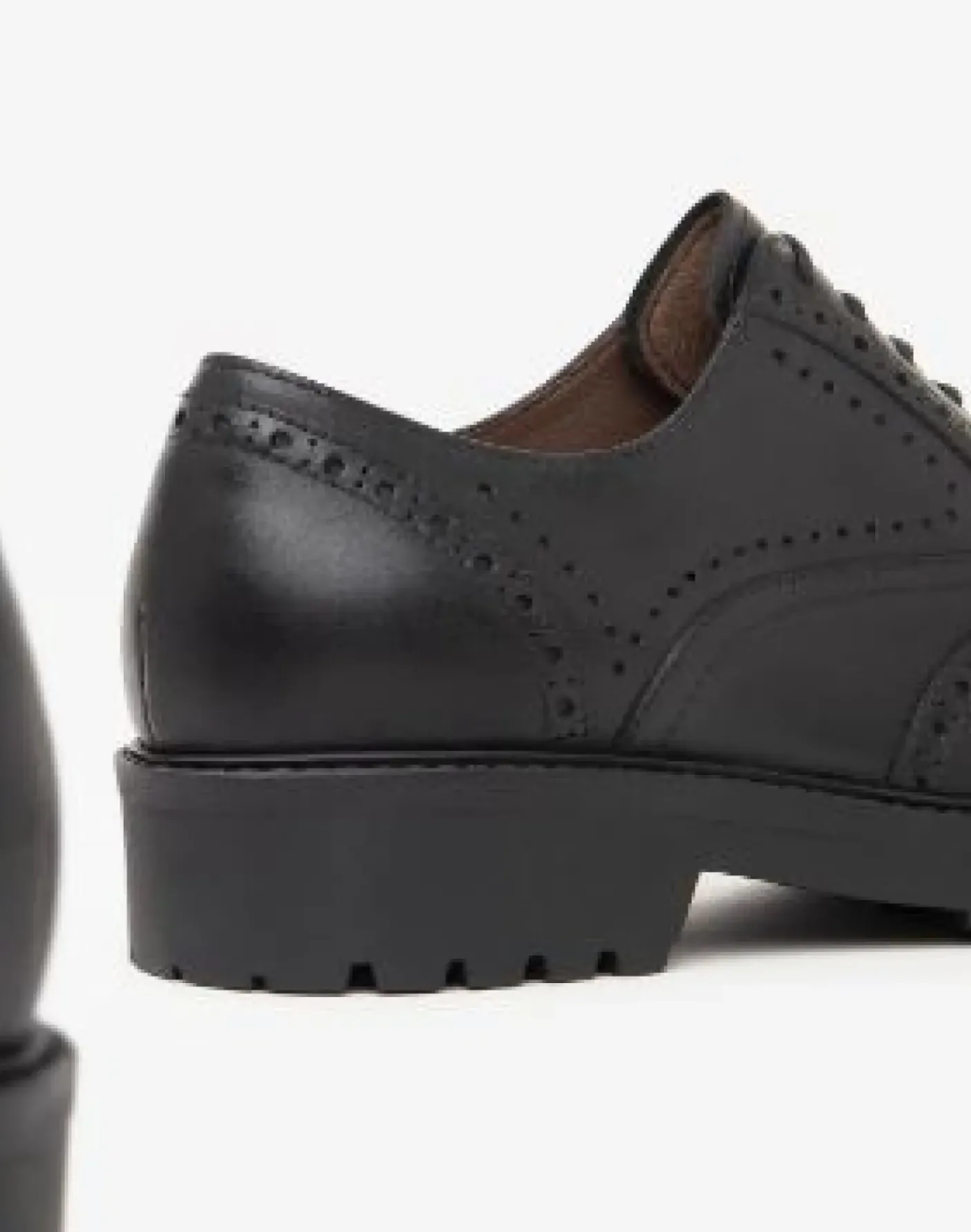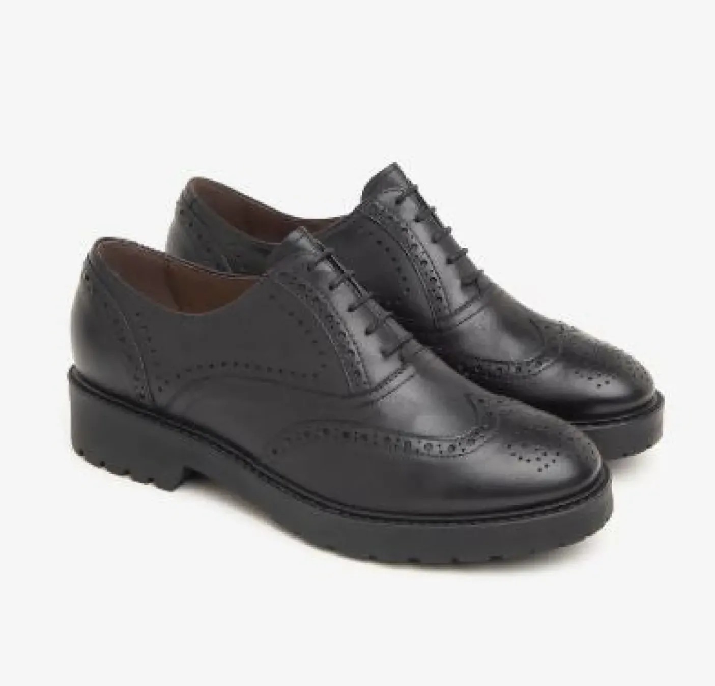 Stringate in pelle con decorazione coda rondine. Rivestita internamente in pelle. Chiusura con lacci. Fondo gomma tacco 3.5 cm.