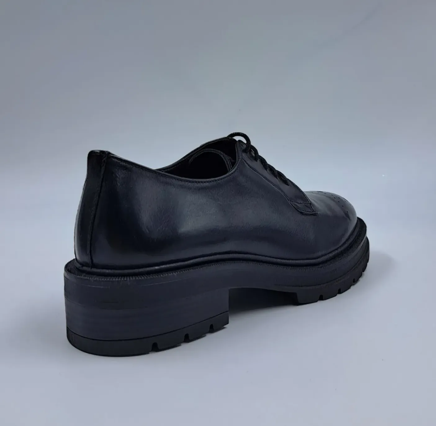 Stringata in vera pelle morbida. Decorazione sulla punta. rivestita internamente in pelle. Fondo gomma 4cm. Chiusura con lacci