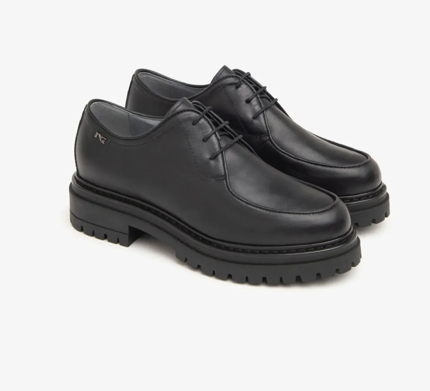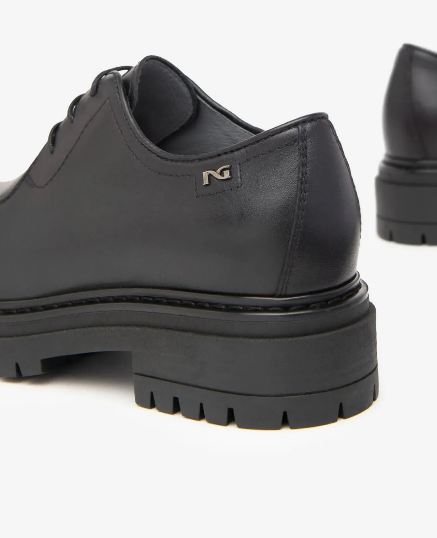 Stringate in pelle. Rivestita internamente in pelle. Chiusura con lacci. Fondo gomma tacco 4 cm. Calzabilità comoda