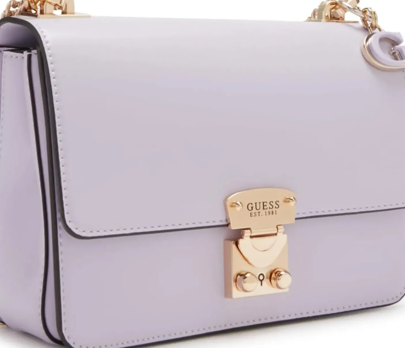 Tracolla in ecopelle, rivestita internamente in tessuto. Tre scomparti portaoggetti. Tasche portaoggetti. Chiusura con patta e clip metallica. Logo frontale. Tracolla metallica ed ecopelle. Charms logato removibile
