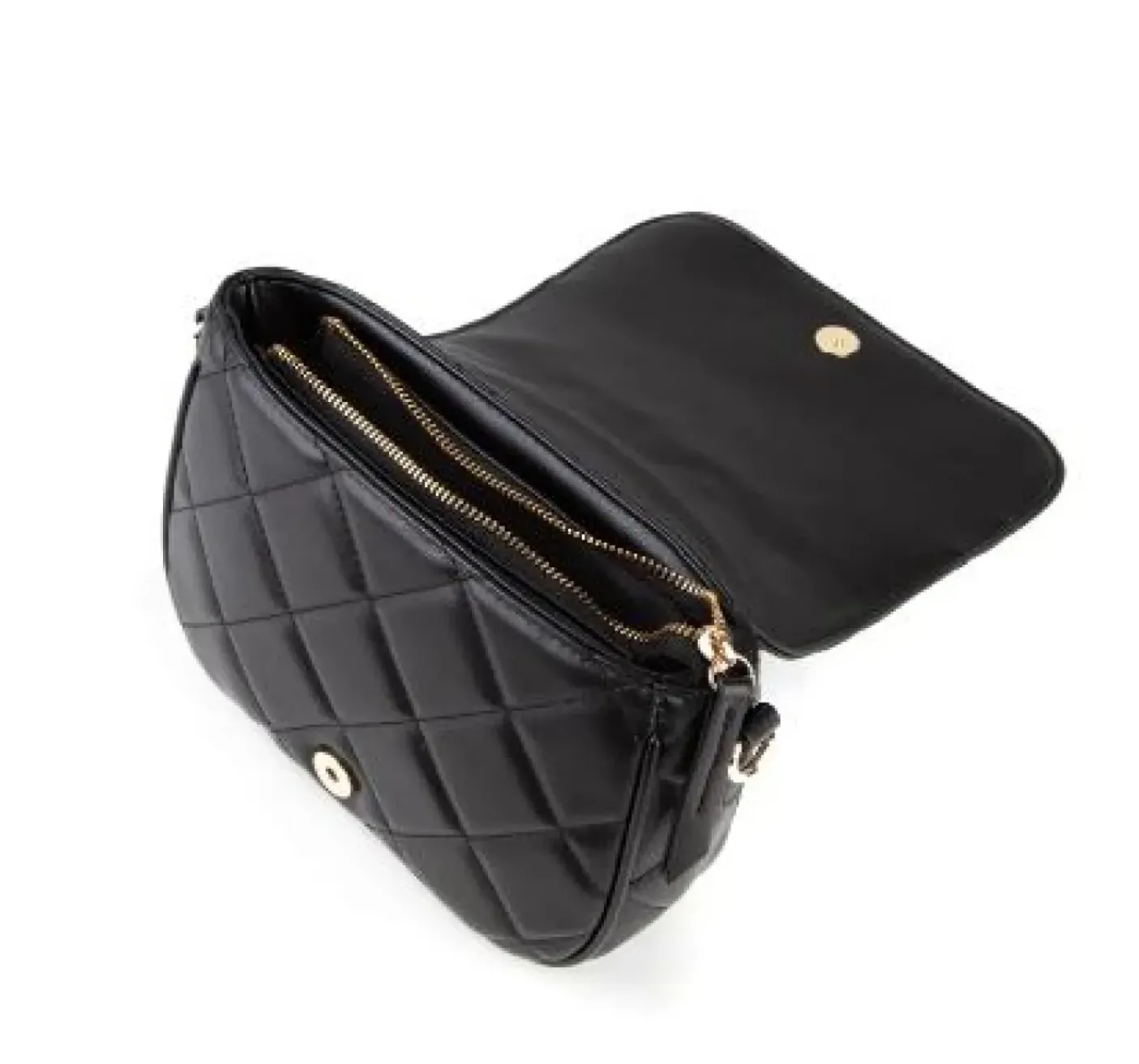 Tracolle in ecopelle effetto matelassè, Rivestita internamente in tessuto logato. Tasca interna zip. Chiusura con zip e patta clip. Logo su patta maxi lettering. Tracolla ecopelle regolabile.