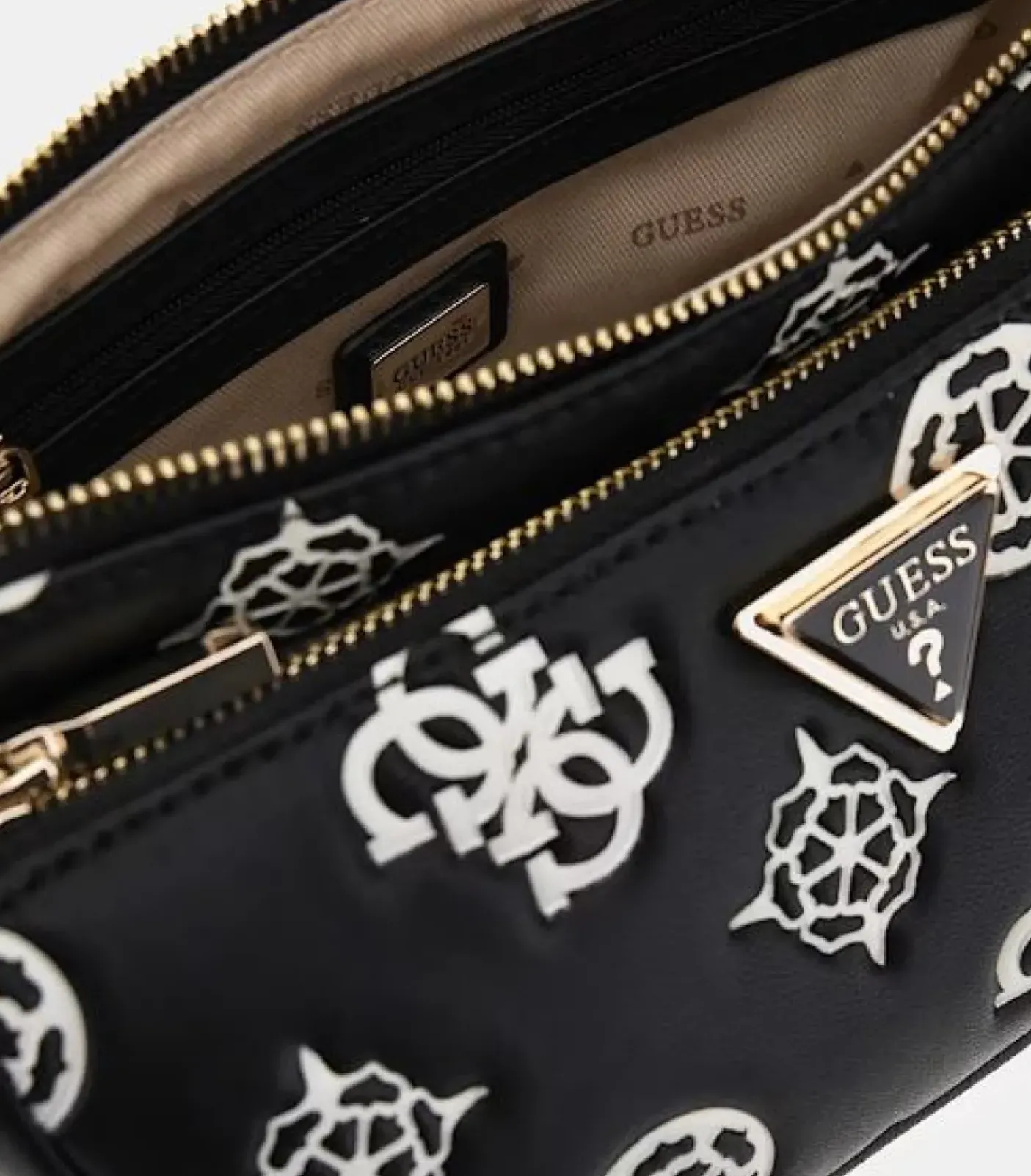 Tracolle borse doppie in ecopelle con 4G e peony logo impresso, con colore a contrasto.