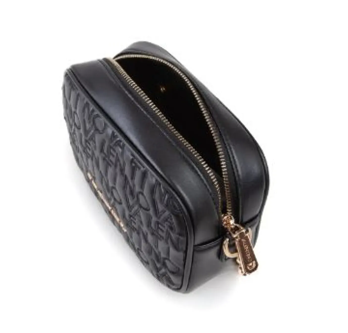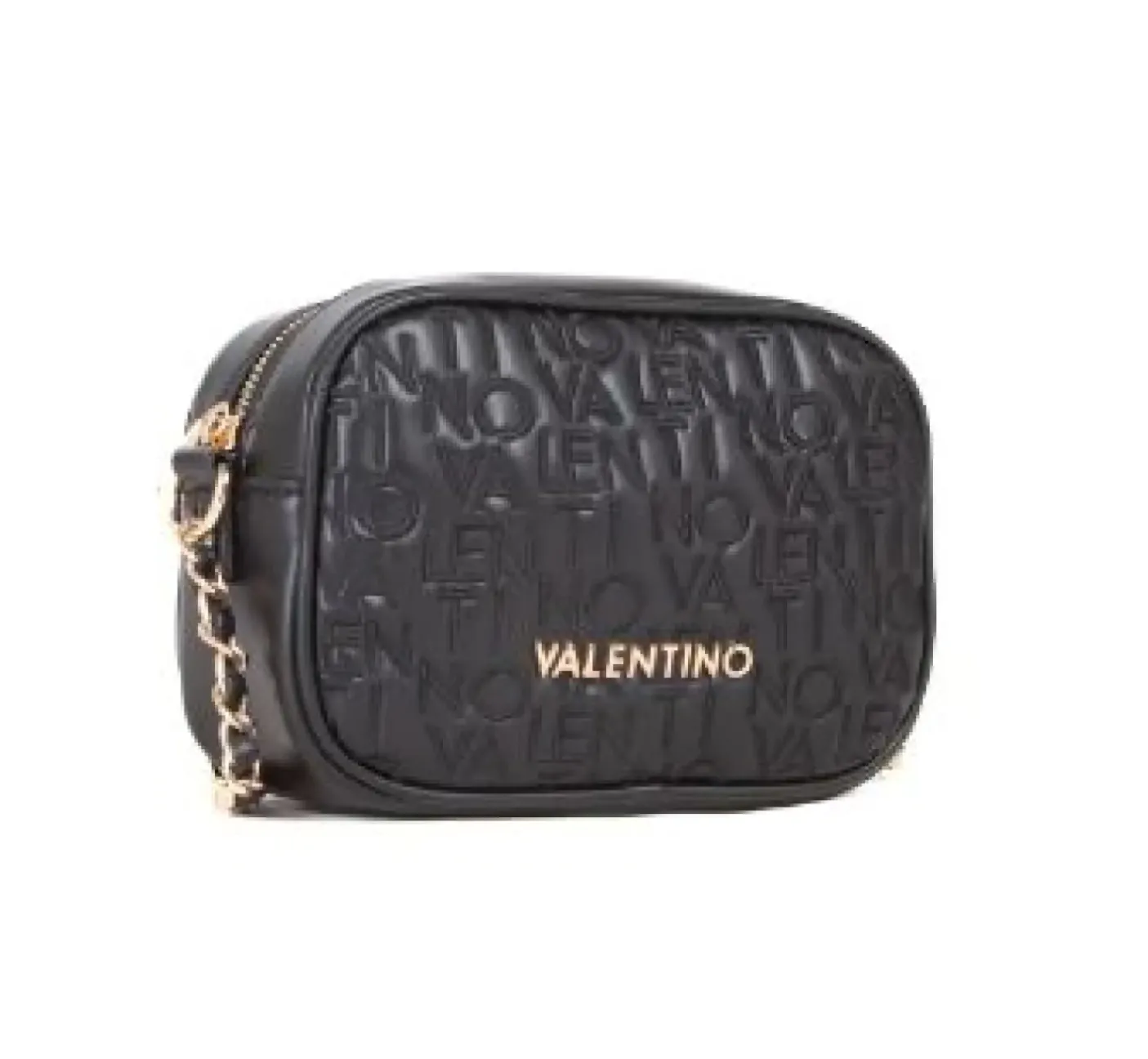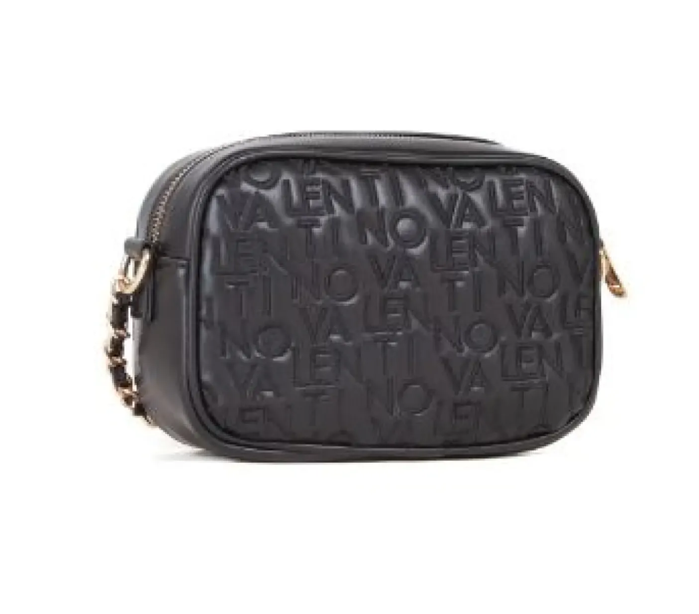 Tracolla in ecopelle logo all over e logo metallico frontale. Tasca interna portaoggetti. Chiusura zip. Tracolla ecopelle e catena metallo regolabile.