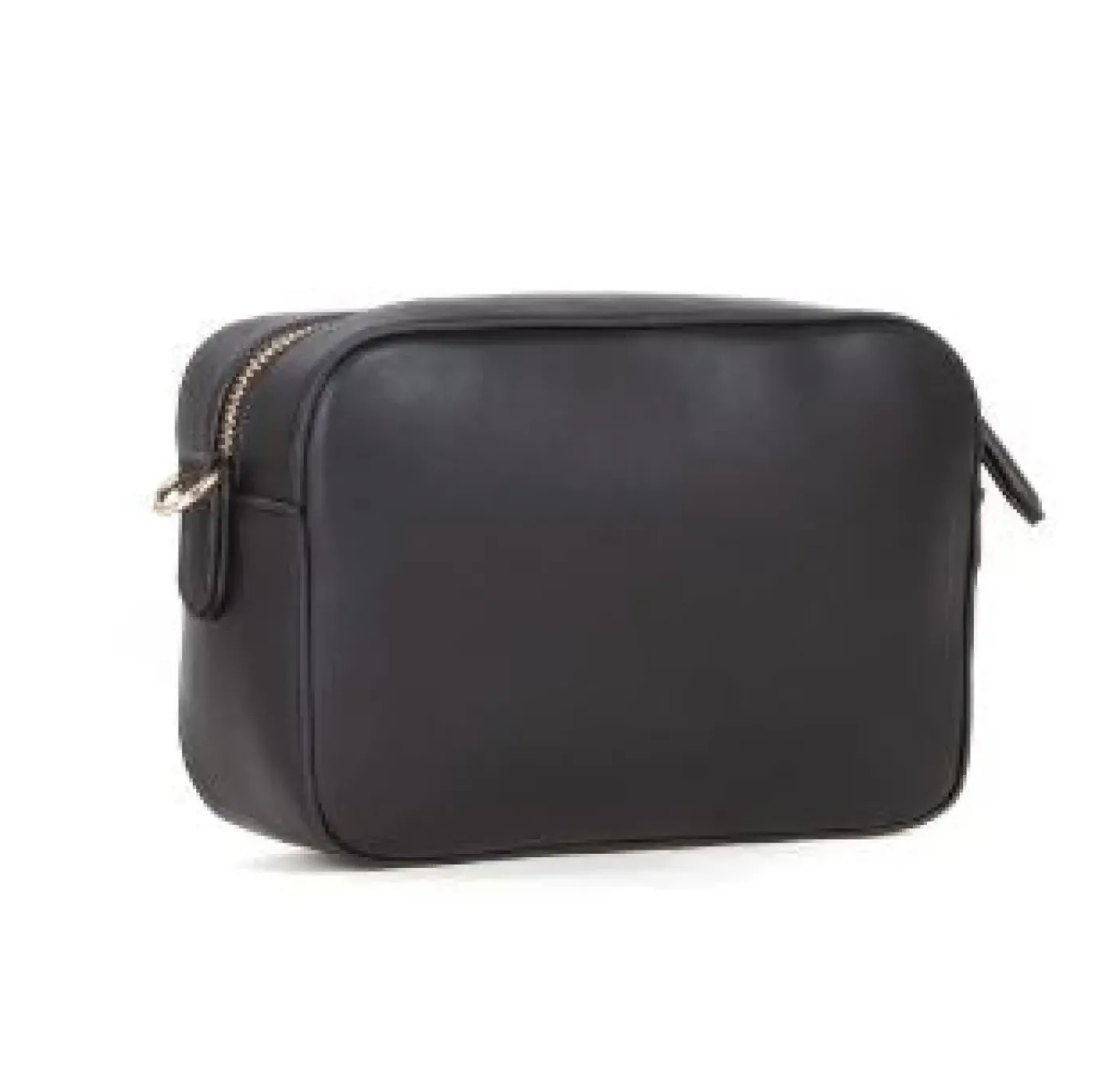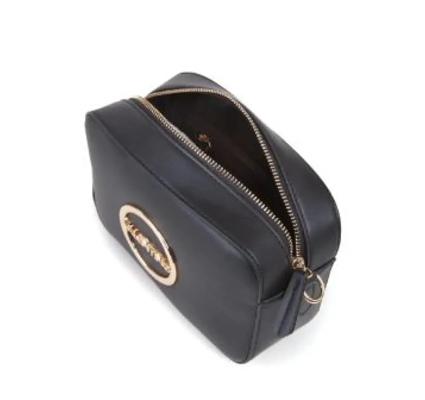 Tracolla in ecopelle logo metallico tondo frontale. Tasca interna portaoggetti zip. Chiusura zip. Tracolla ecopelle regolabile.