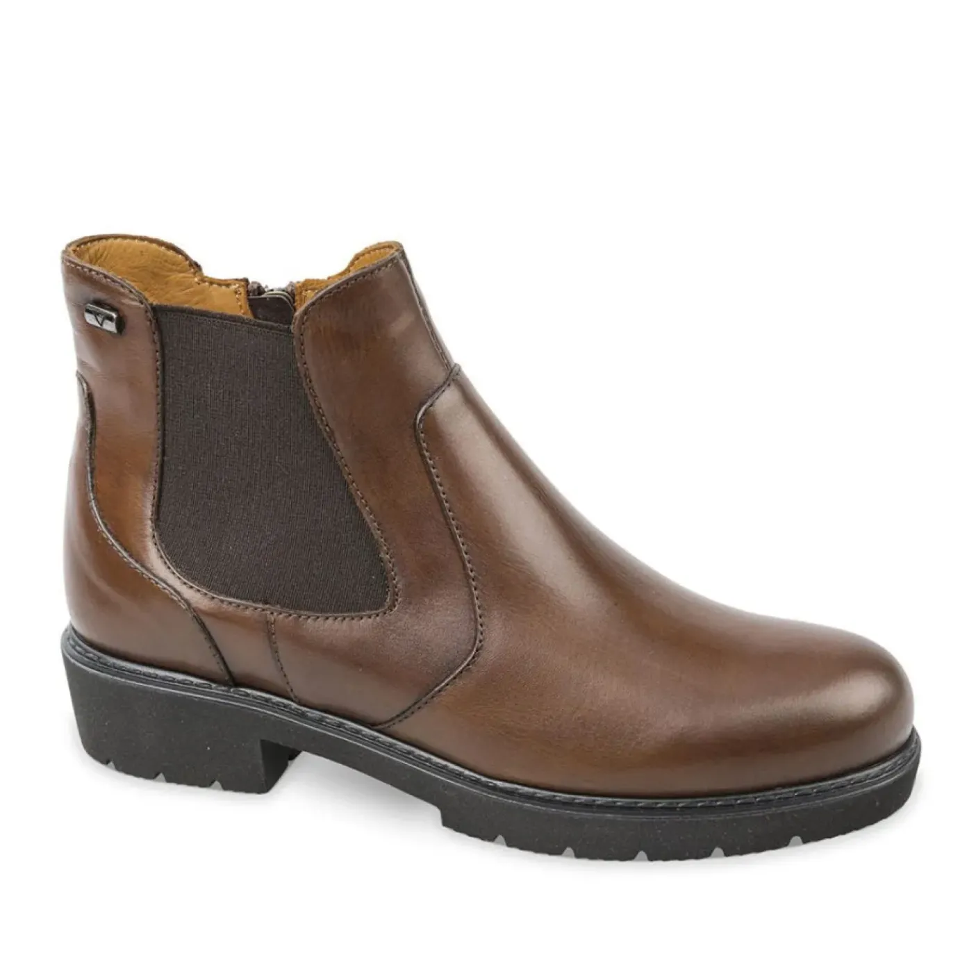 Tronchetto in pelle rivestito internamente in tessuto, con elastici laterali. Suoletta in cuoio. Tacco 4 cm. Flessibili e morbidi.
