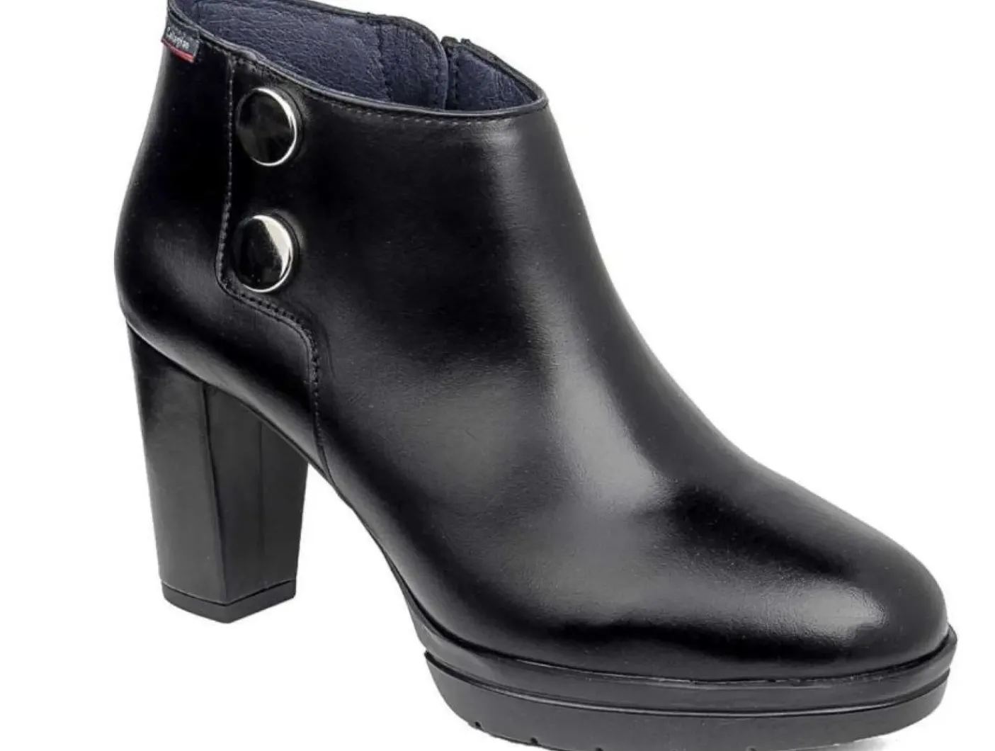 Tronchetto in vera pelle, materiale ultra leggero e molto flessibile che ammortizza il peso del corpo. Fondo in gomma, tacco 9cm.