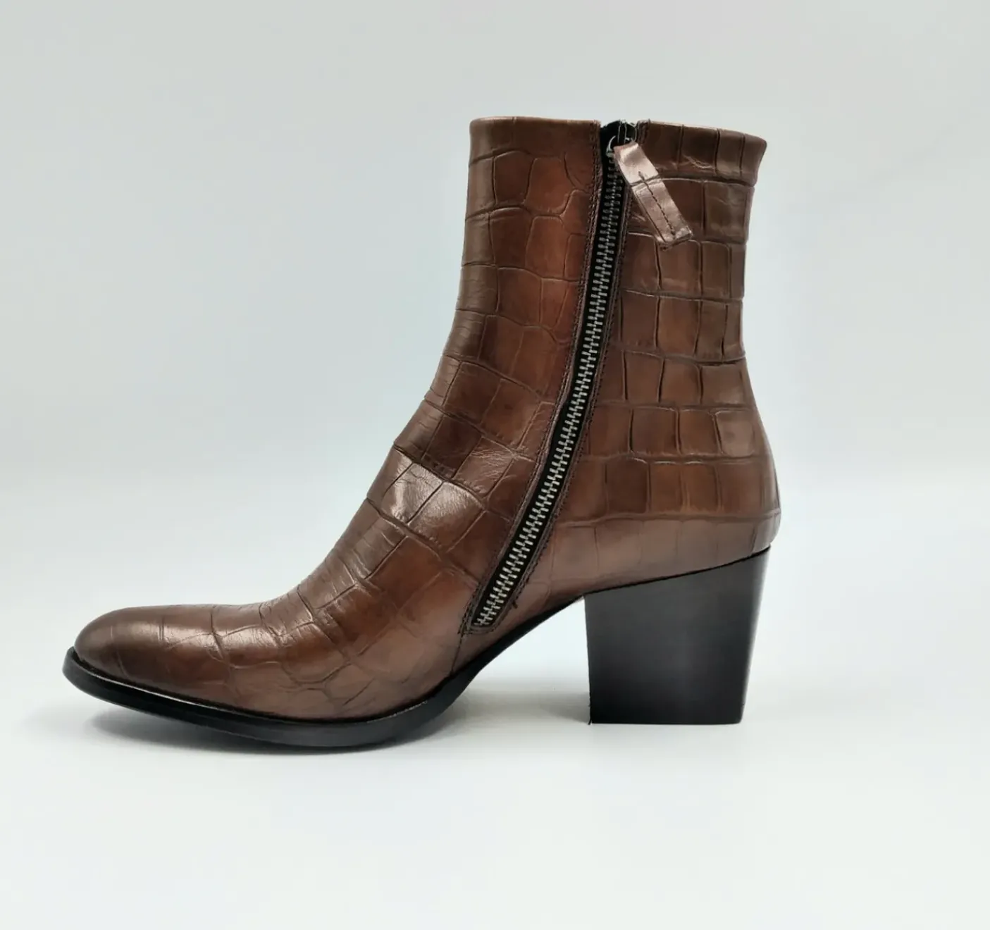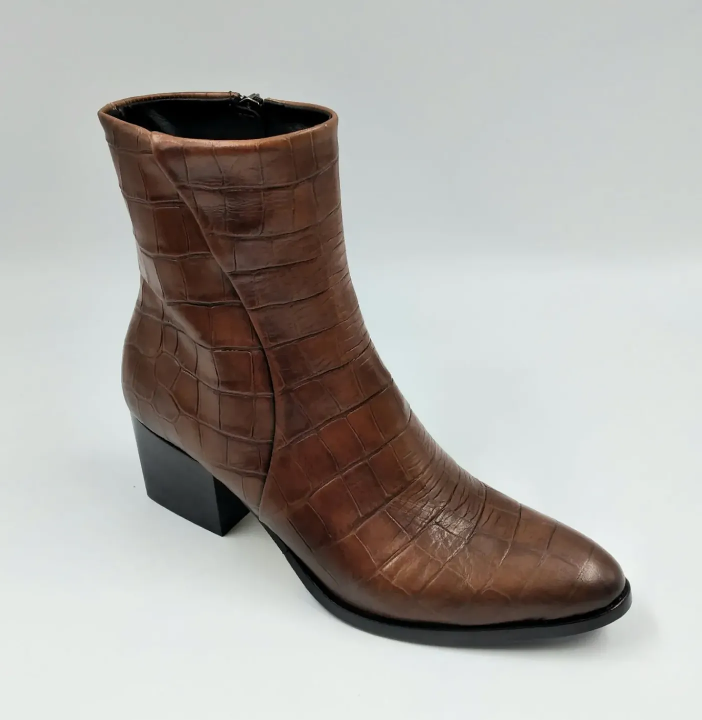 Tronchetti in vera pelle morbida effetto cocco. Rivestimento internamente in tessuto. Chiusura con zip laterale. Tacco 7cm