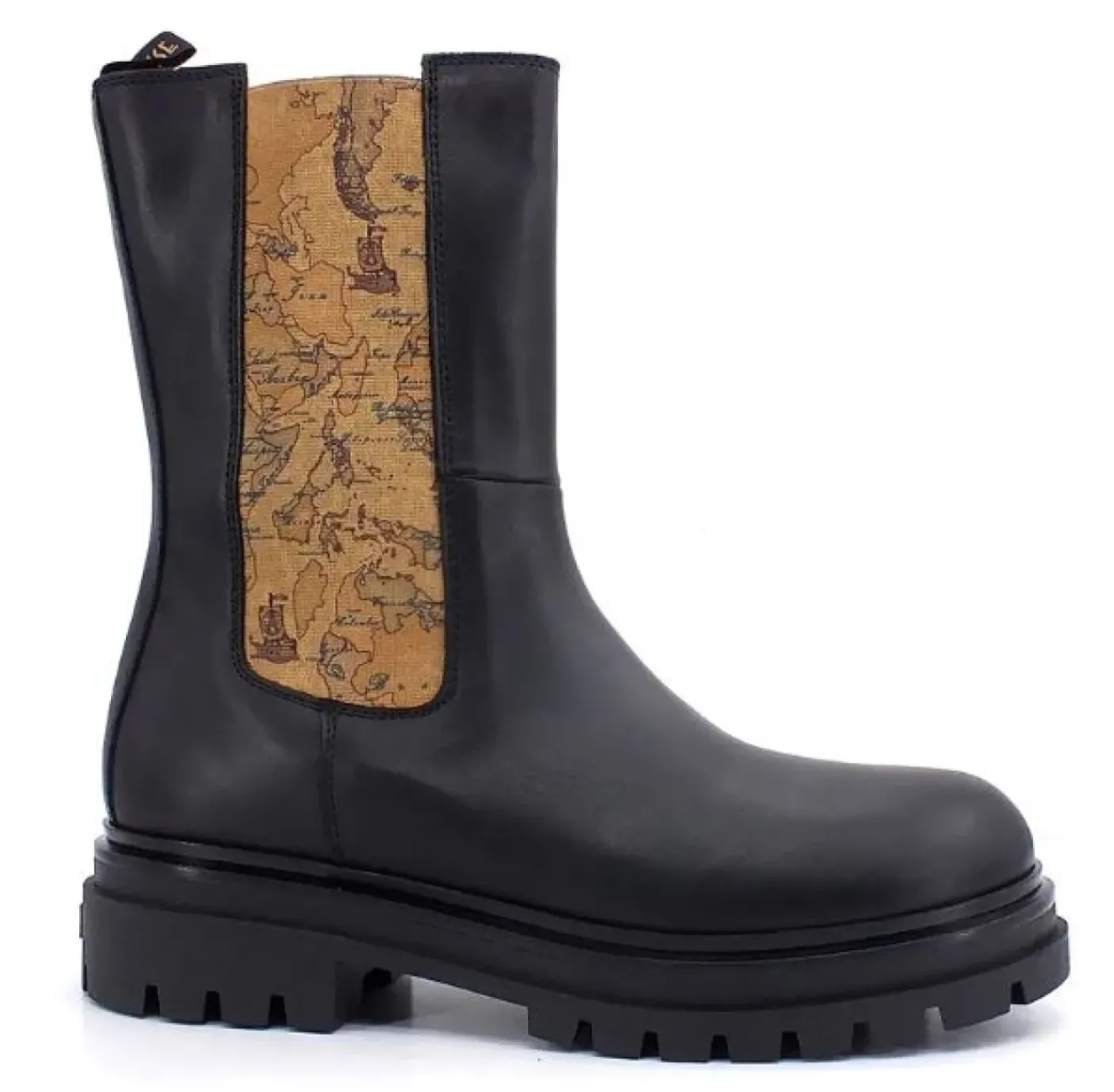 Tronchetto modello beatles in pelle con dettagli geo. Rivestito internamente in pelle. Chiusura con cerniera laterale. Fondo gomma 4cm.