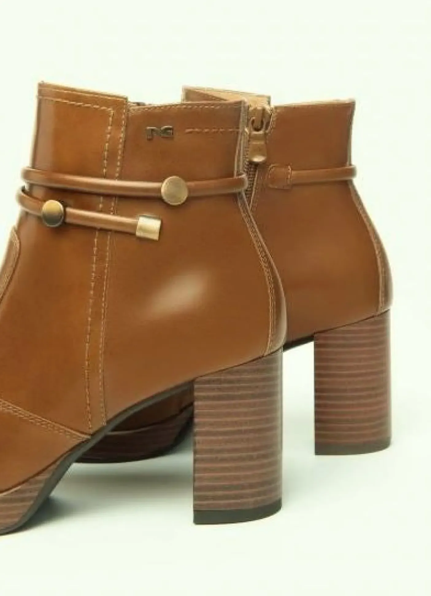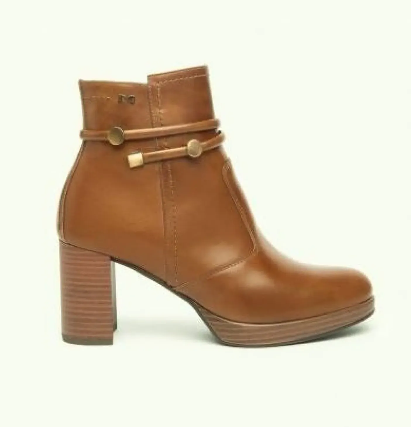 Tronchetti in vera pelle, rivestito internamente in pelle. Decorazioni lacci pelle alla caviglia con applicazione metallica. Logo laterale. Chiusura con zip. Fondo gomma tacco a contrasto 7,5cm