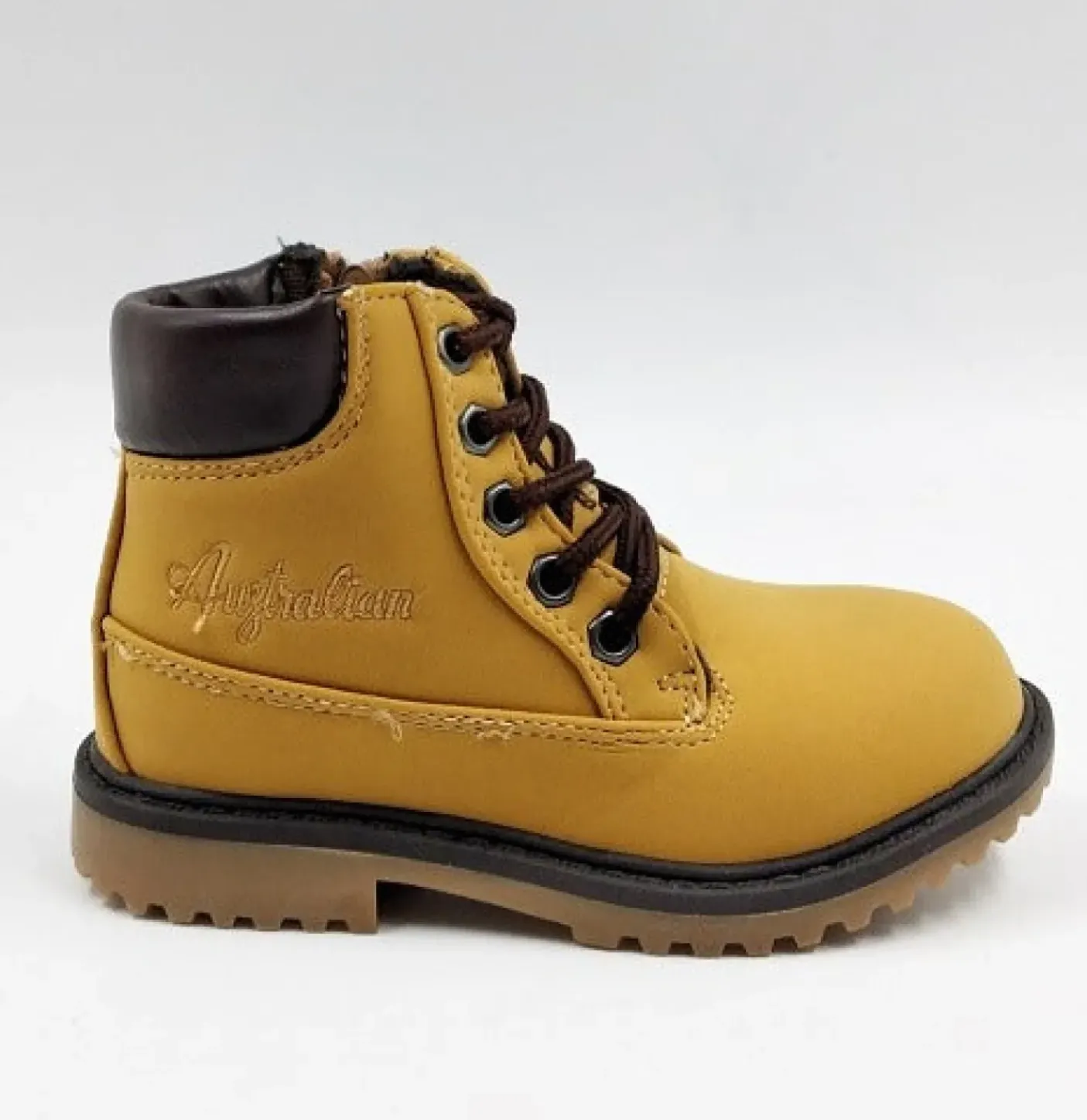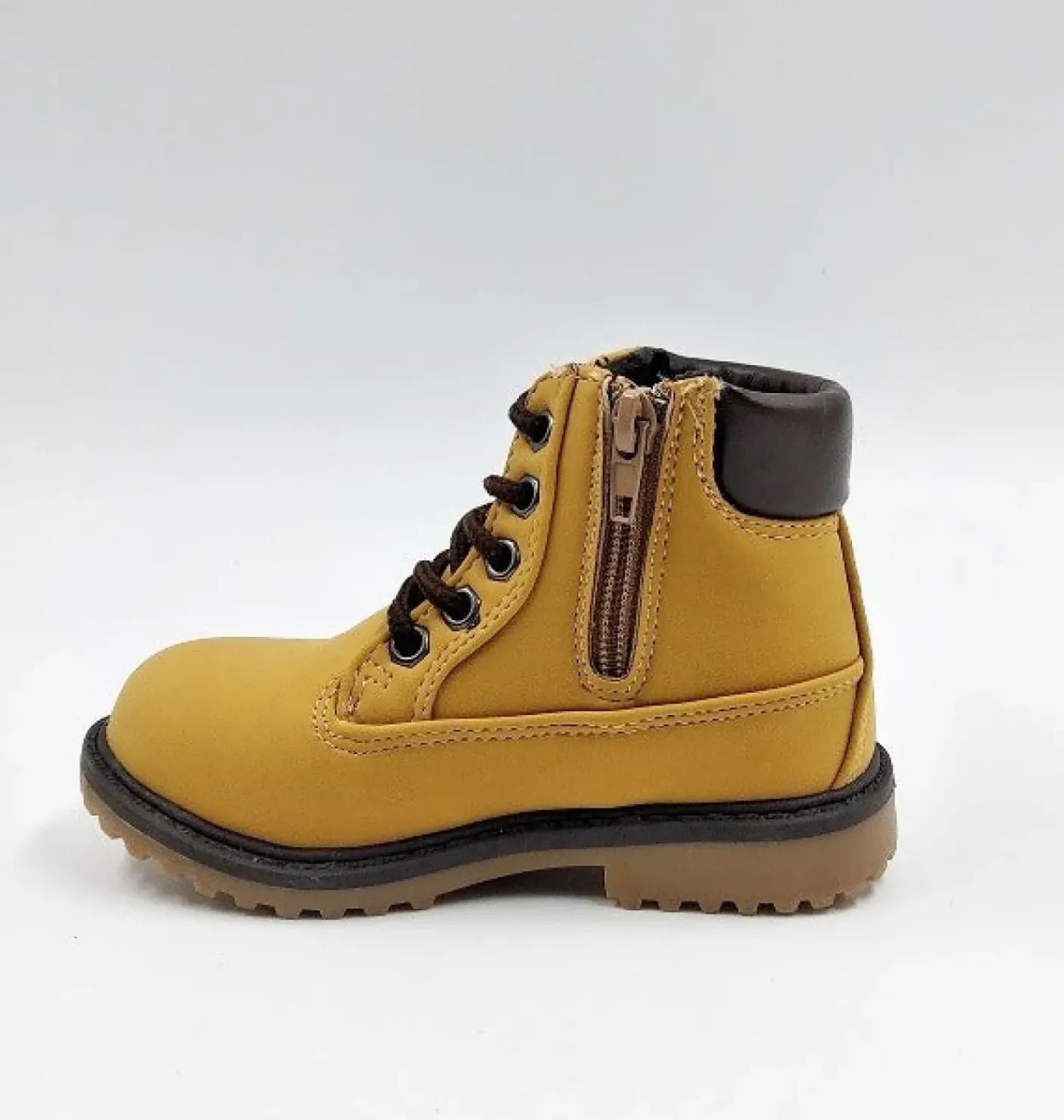 Anfibi kids in ecopelle, con fondo in gomma e chiusura con lacci e pratica zip laterale.