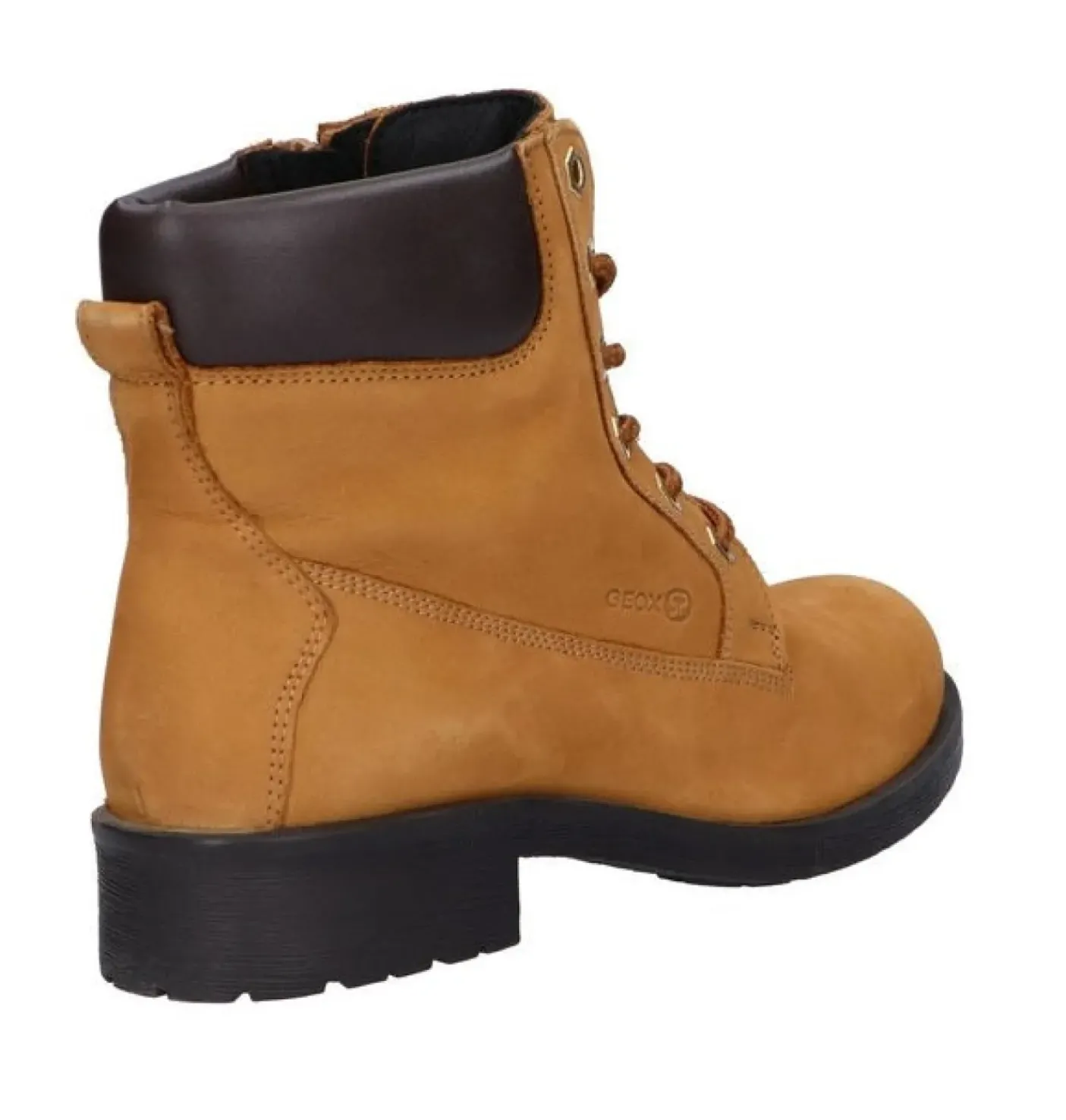 Anfibi in pelle con rivestimento interno in tessuto, Suoletta in cuoio e chiusura con lacci e zip laterale. Fondo in gomma con brevetto traspirante GEOX