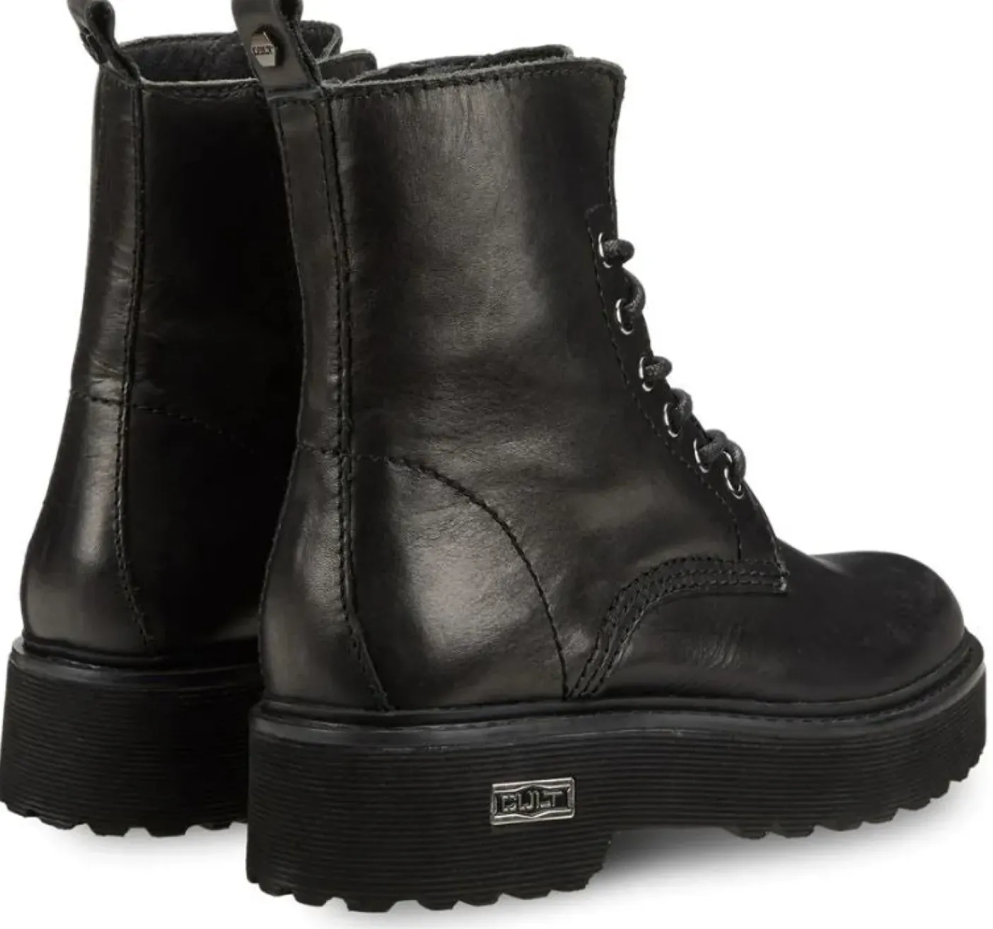 Anfibio invera pelle nera con chiusura a stringhe e suola rinforzata. Chiusura con lacci. Linguetta posteriore con bottone logato. Altezza suola 5cm