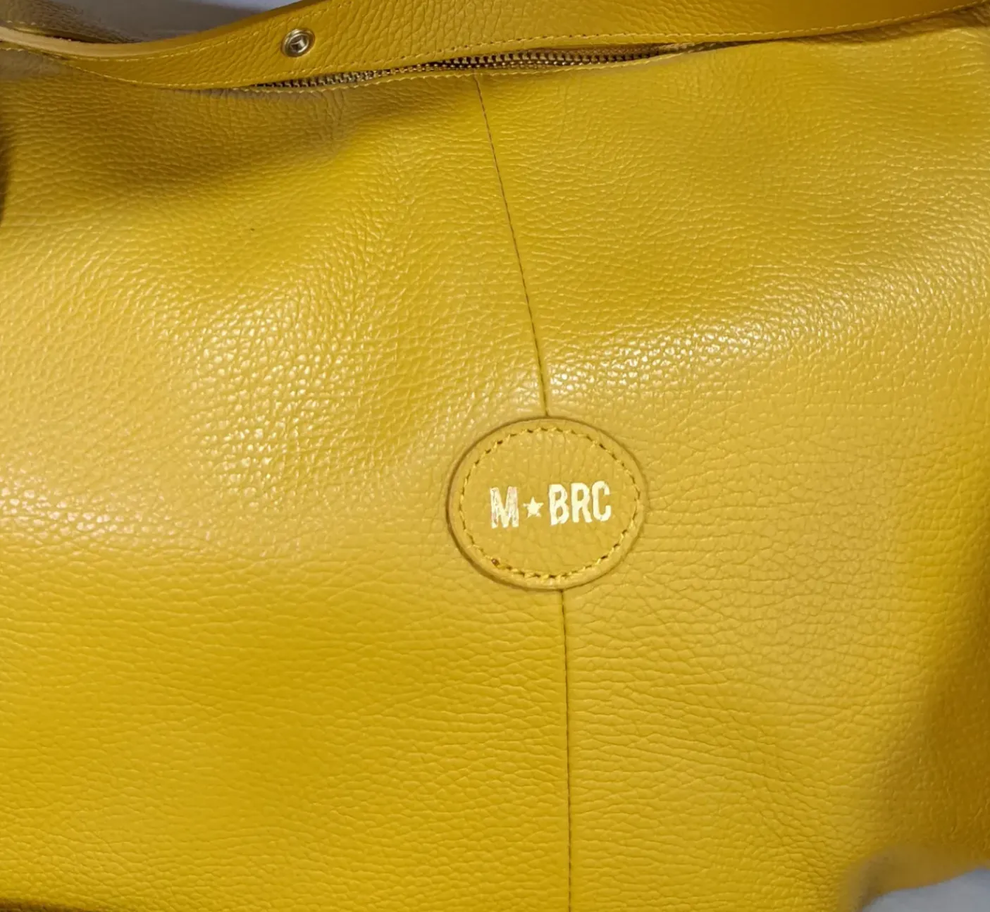 Borsa in vera pelle foderata in tessuto logato. Scomparto con tasche porta oggetti, uno con zip. Logo M*brc sul fronte. Chiusura con zip. Manico regolabile.
