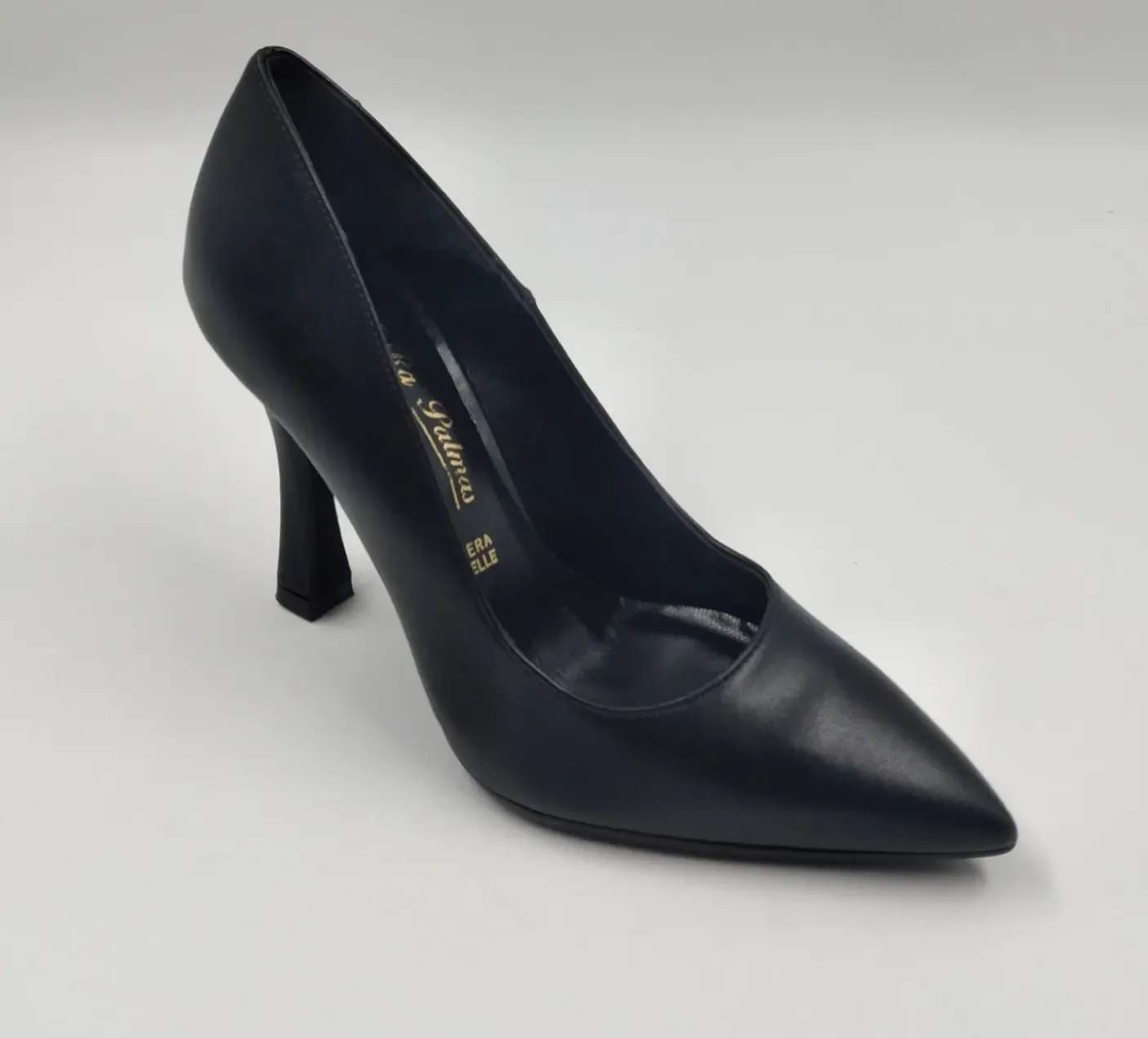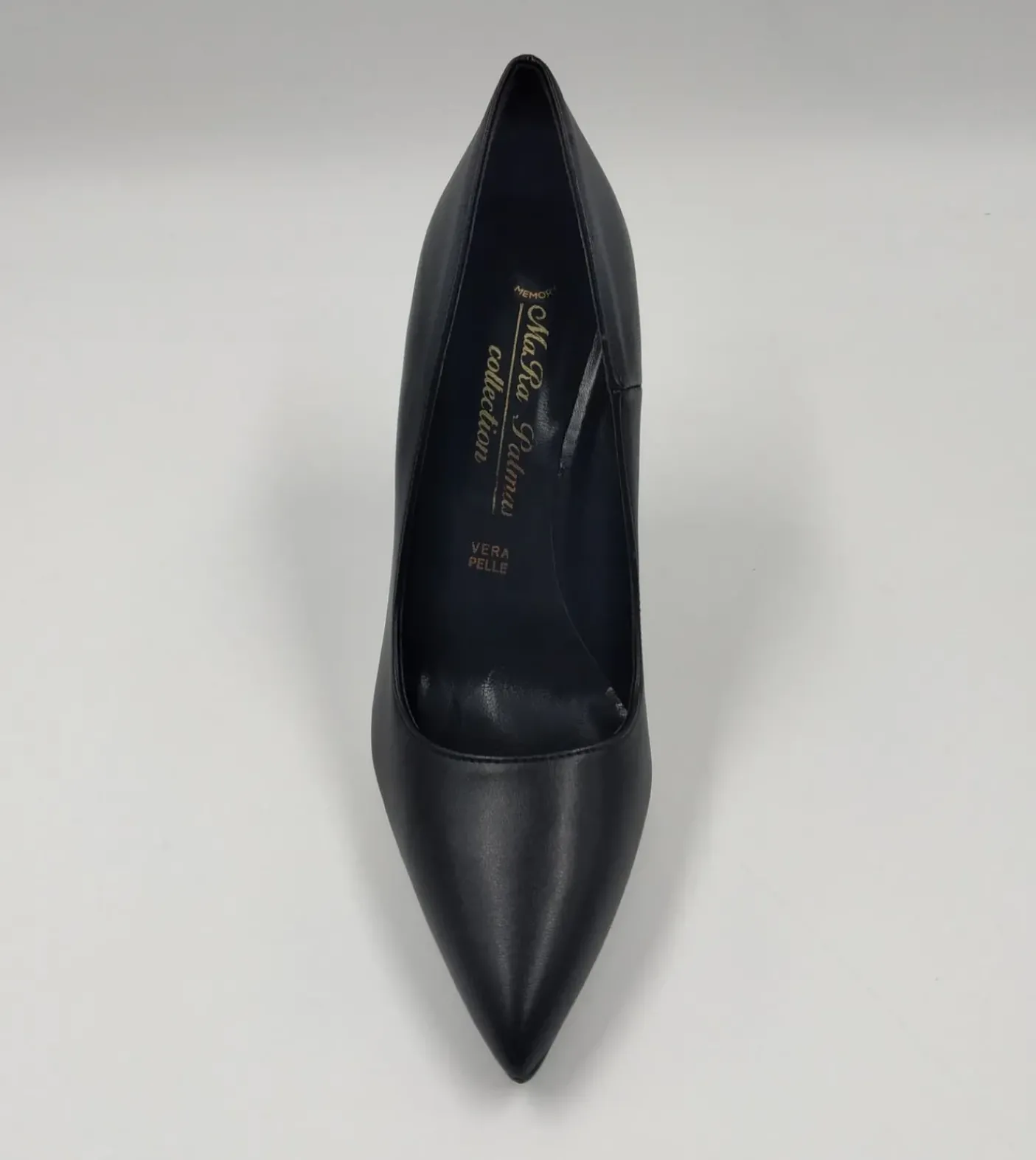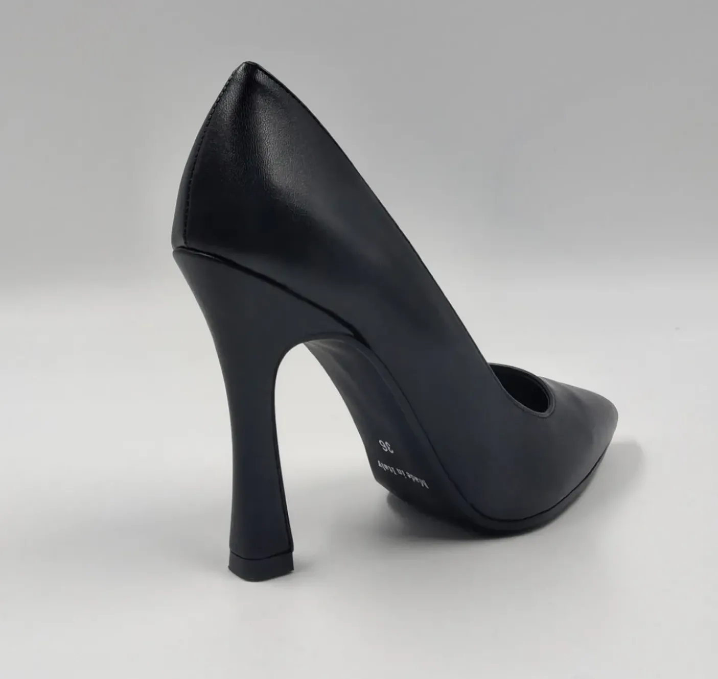 Decollete in ecopelle rivestita internamente in Vera Pelle. Soletta in memory foarm. Tacco a rocchetto 10cm.