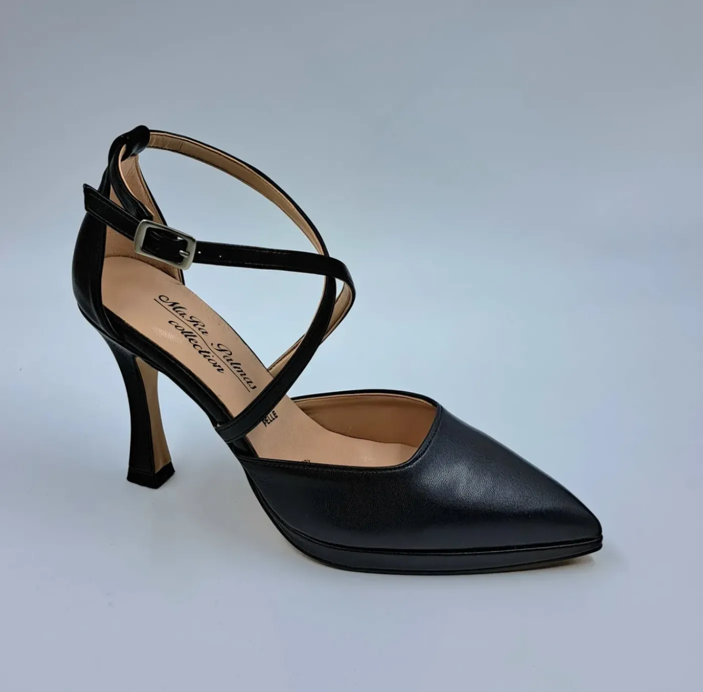 Decolleté con chiusura alla caviglia regolabile. Rivestita internamente in pelle. Tacco 9.5 cm.
