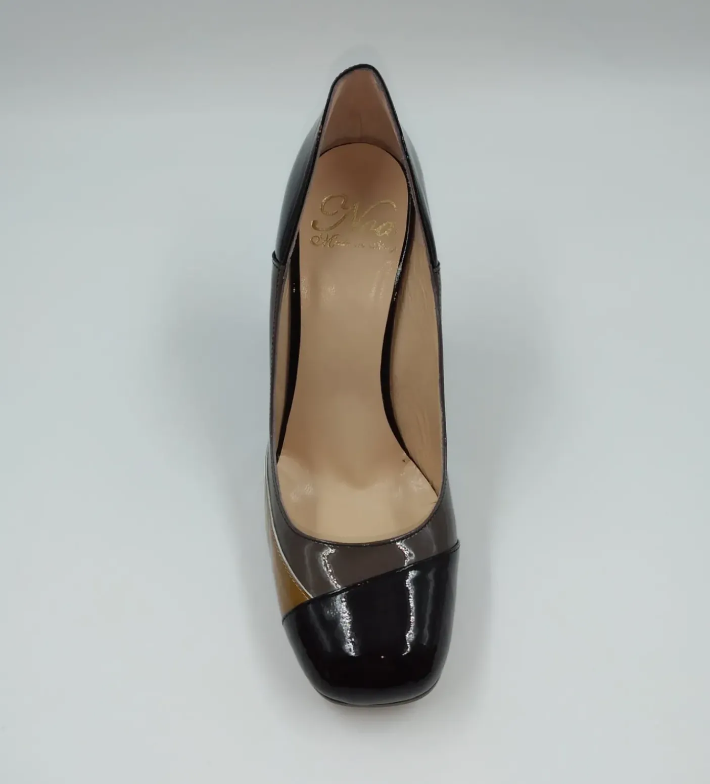 DECOLLETE PELLE VERNICE TRICOLOR STRISCIA TAUPE