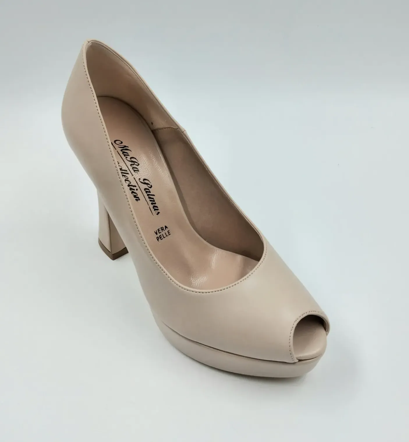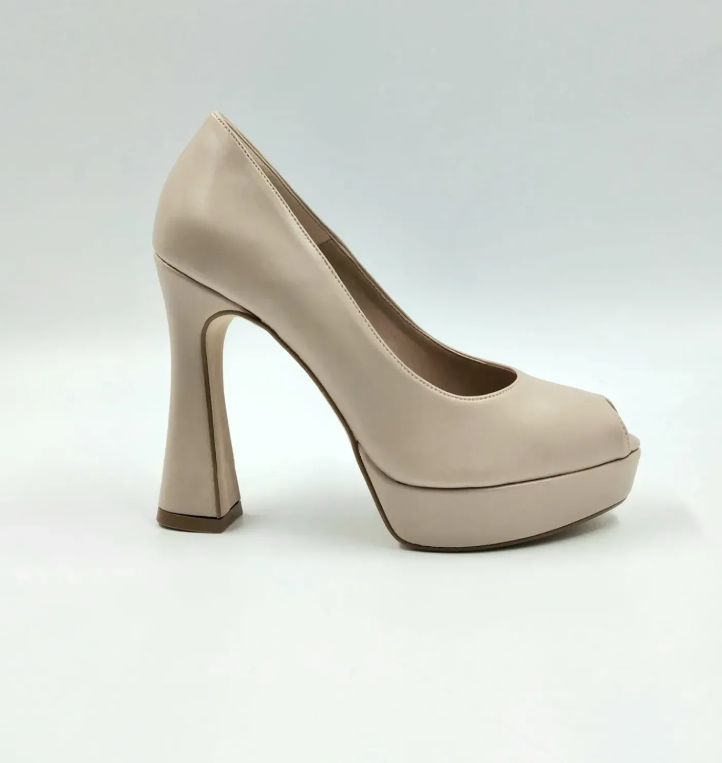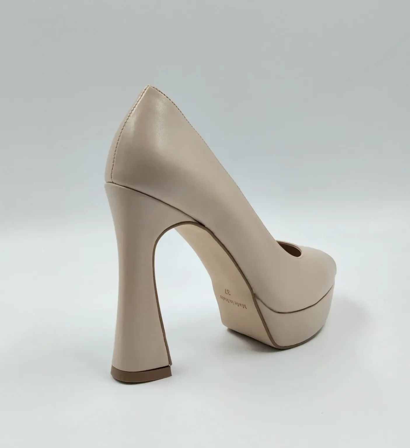 Décolleté in ecopelle spuntata con soletta in vera pelle. Tacco 11cm e plateau 2.5cm