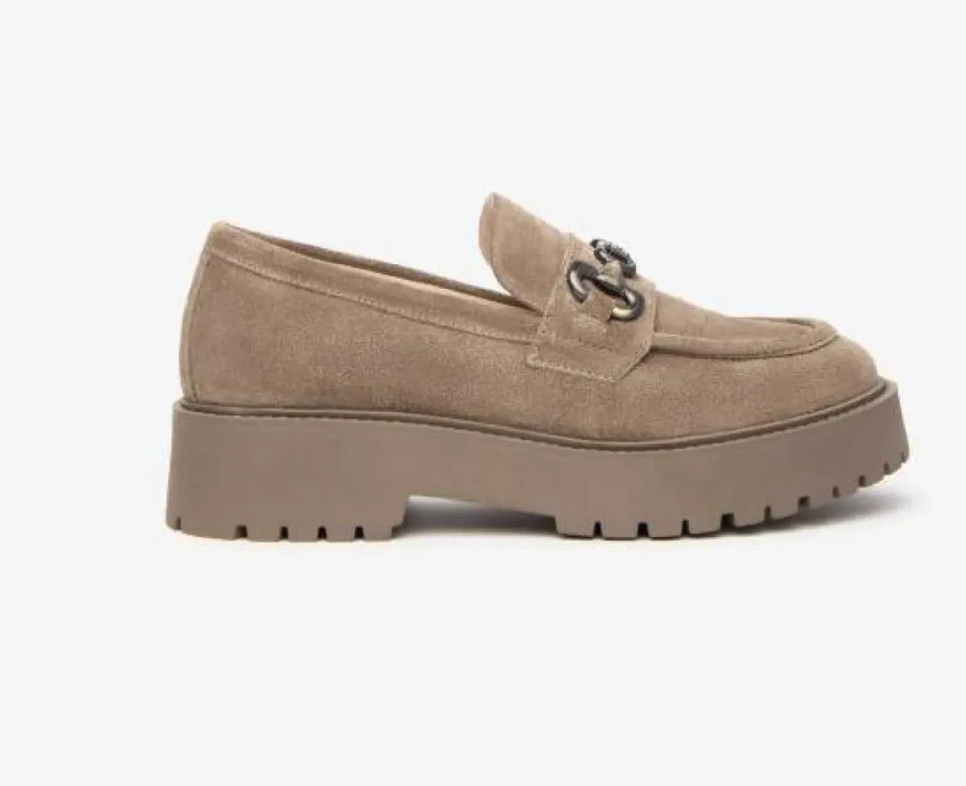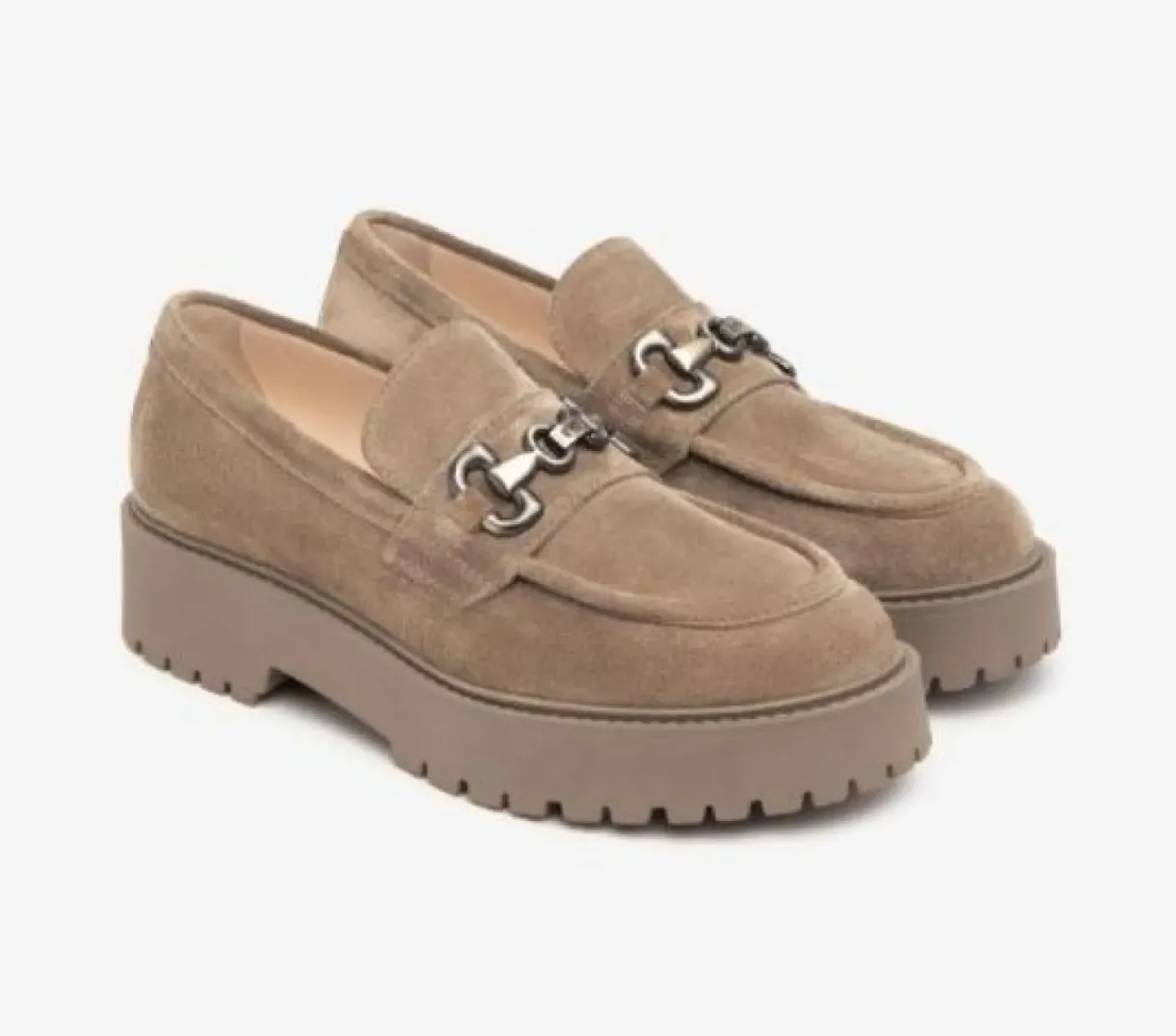 MOCASSINI CAMOSCIO ARGILLA APPLICAZIONE METALLICA