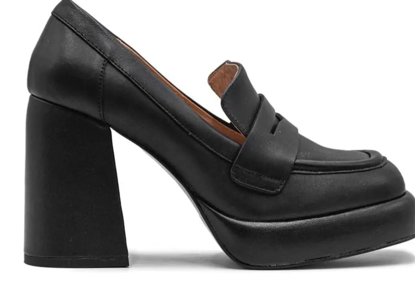 Mocassini in vera pelle morbida. Rivestito internamente in pelle. Punta squadrata. Tacco squadrato rivestito camoscio 10cm plateau 2cm