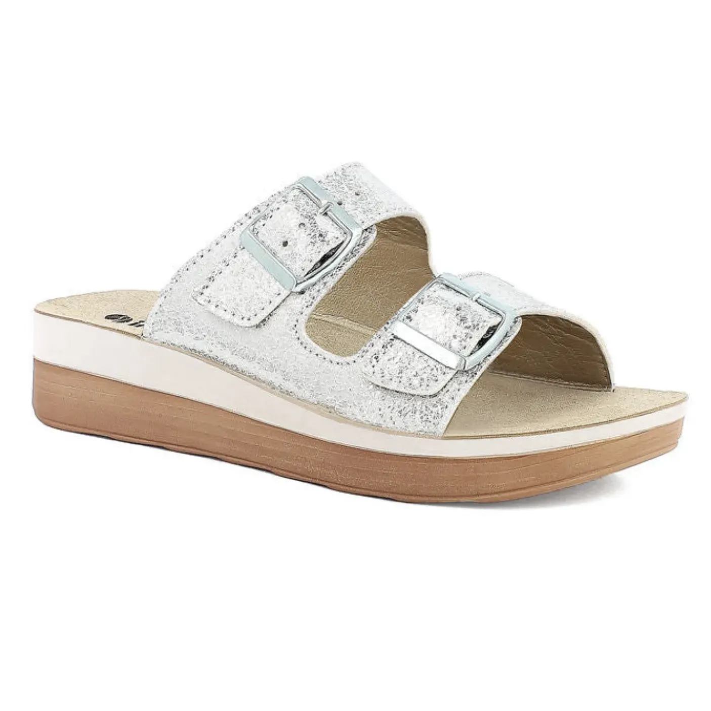 PANTOFOLE DOPPIA FIBBIA SUOLA BICOLORE BIANCA