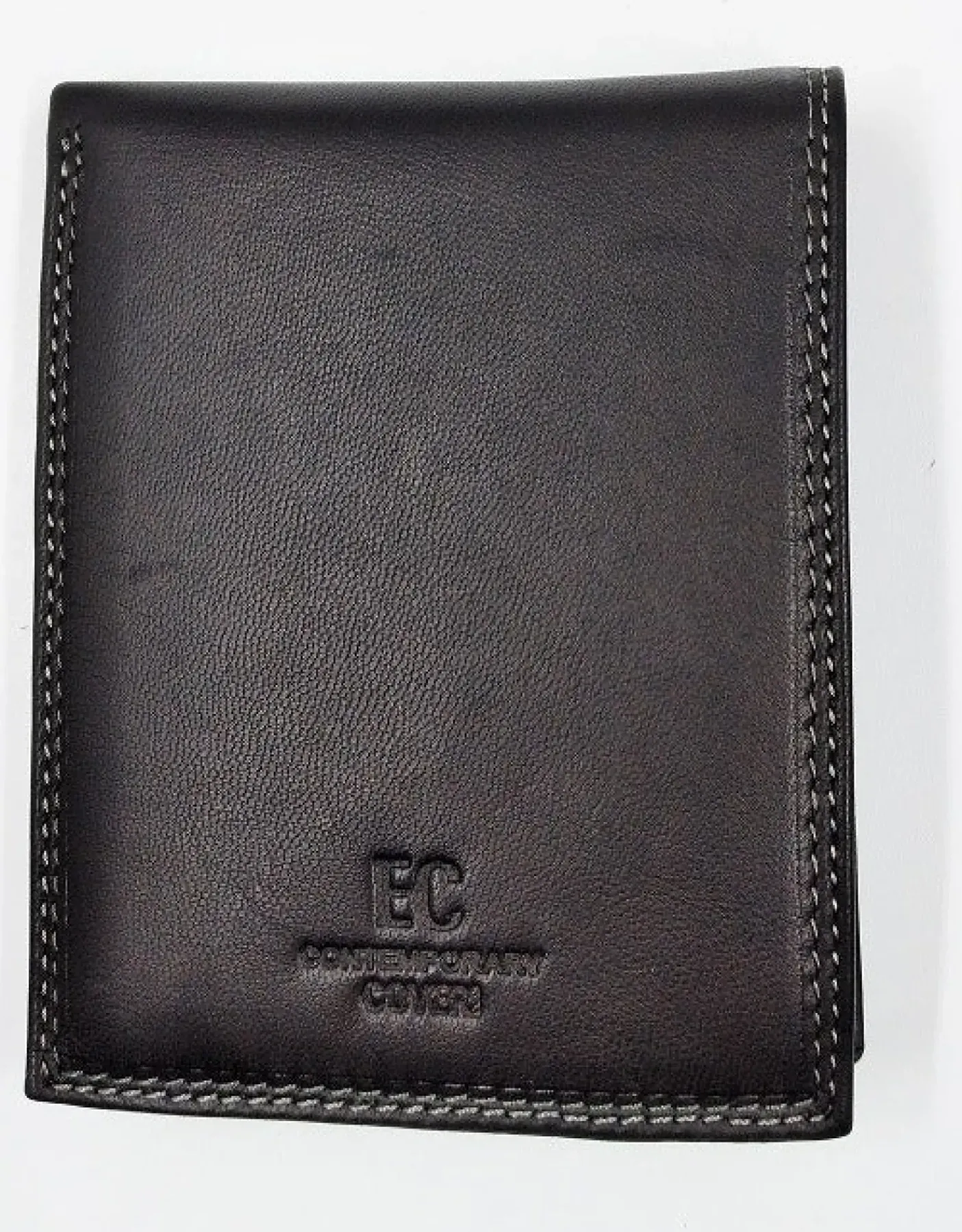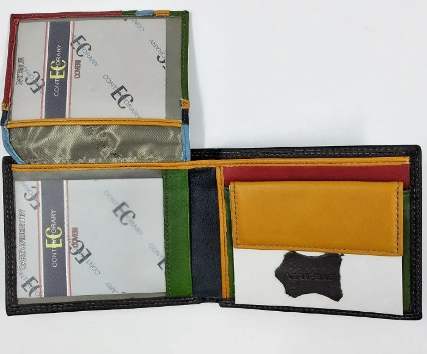 Portafoglio in vera pelle nera multi tasche color, con scomparto portadocumenti e porta monete.