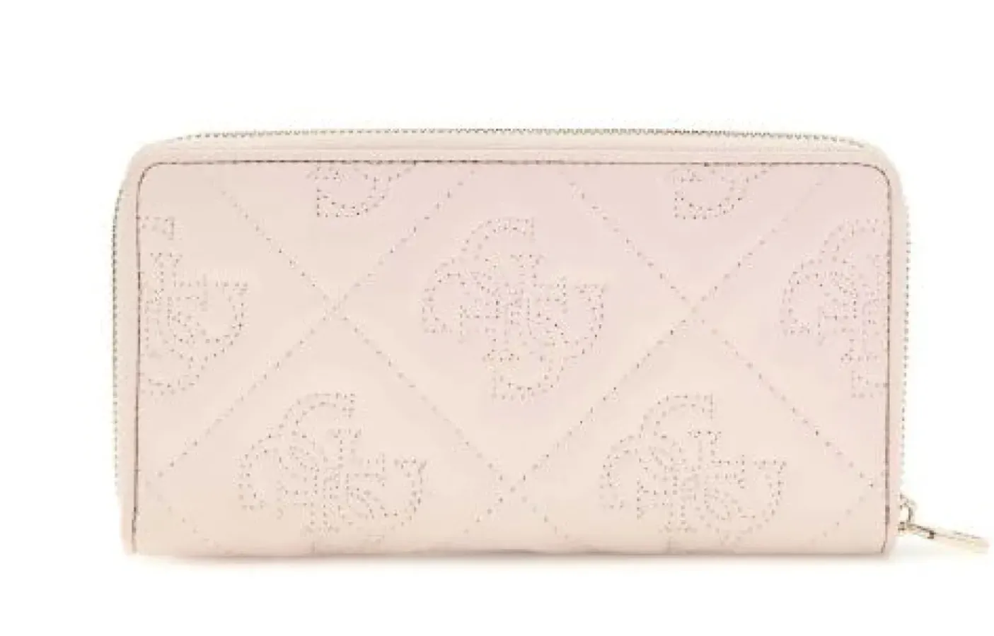 Portafoglio multi scomparto in ecopelle effetto trapuntato. Porta carte di credito e documenti. Porta monete con zip. Logo metallico frontale. Chiusura con zip.